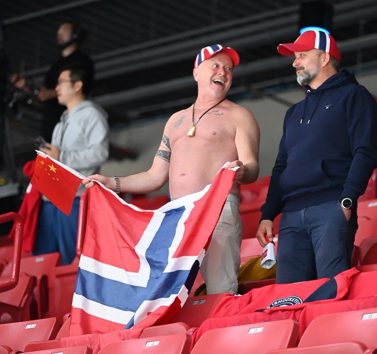 As Norway faced a very tough Team China opponent with at least one fan, pulling out all the stops to cheer his Norwegian team on.
