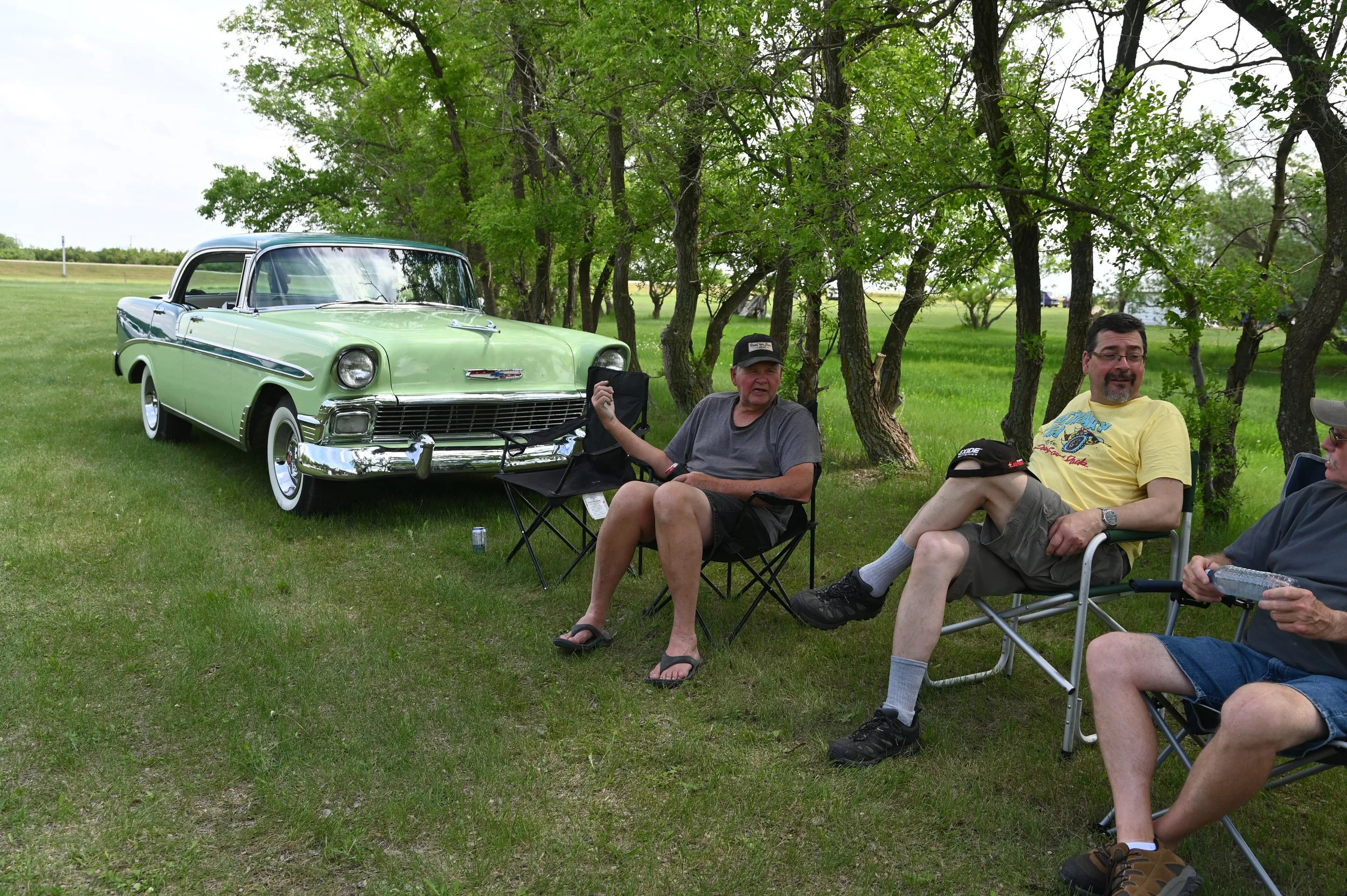 THE CAR SHOW GAVE FRIENDS TIME TO SIT OUTDOORS IN THE SHADE AND TALK ABOUT GOOD TIMES AND AUTOMOBILES - MJ INDEPENDENT PHOTO