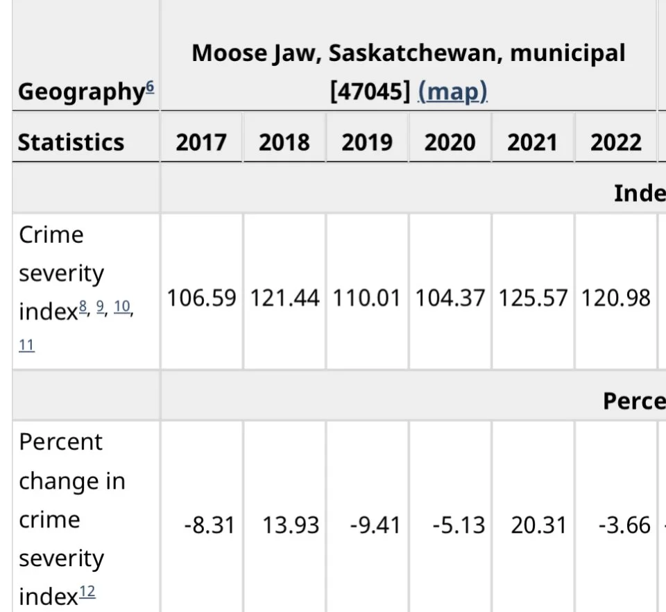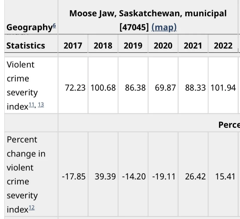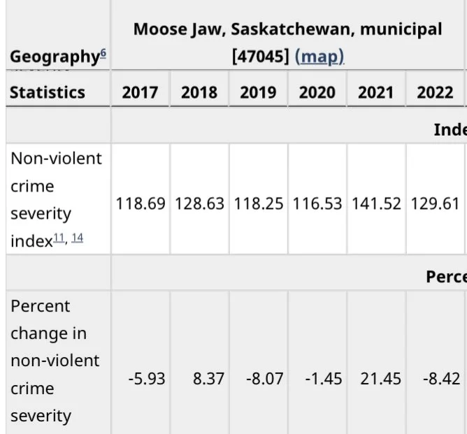 For Moose Jaw last year, 2022, saw the Violent Crime Severity Index (VCSI) jump by 15.41 percent compared to 2021.