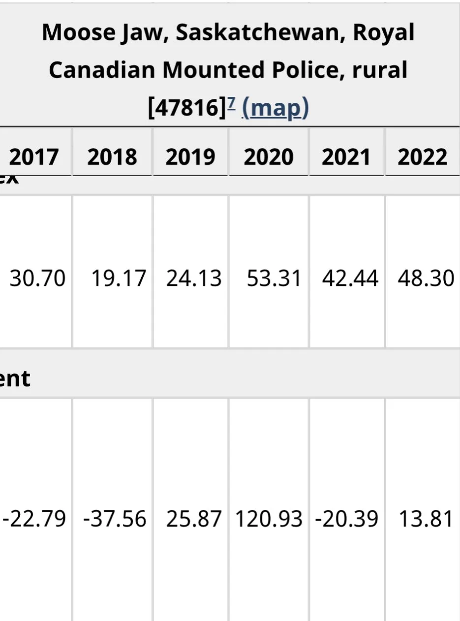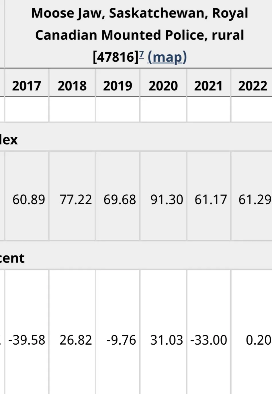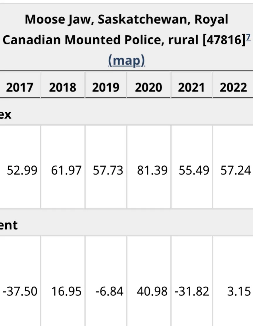 As in Moose Jaw the Violent Crime Severity Index (VCSI) in rural areas is up by 13.81 percent in 2022 versus 2021.