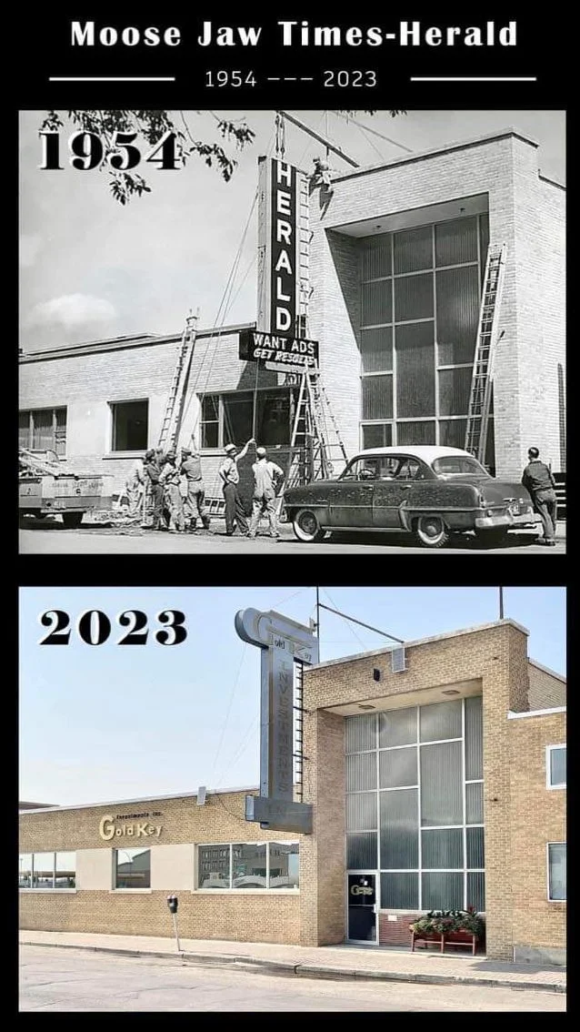 We received this photo collage from a reader and given the history of the old Moose Jaw Times-Herald sign thought we would put it up.