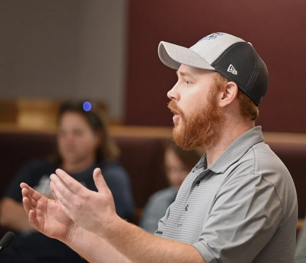 PROPERTY OWNER JAMIE WALLACE SPEAKS TO COUNCIL - MJ INDEPENDENT PHOTO