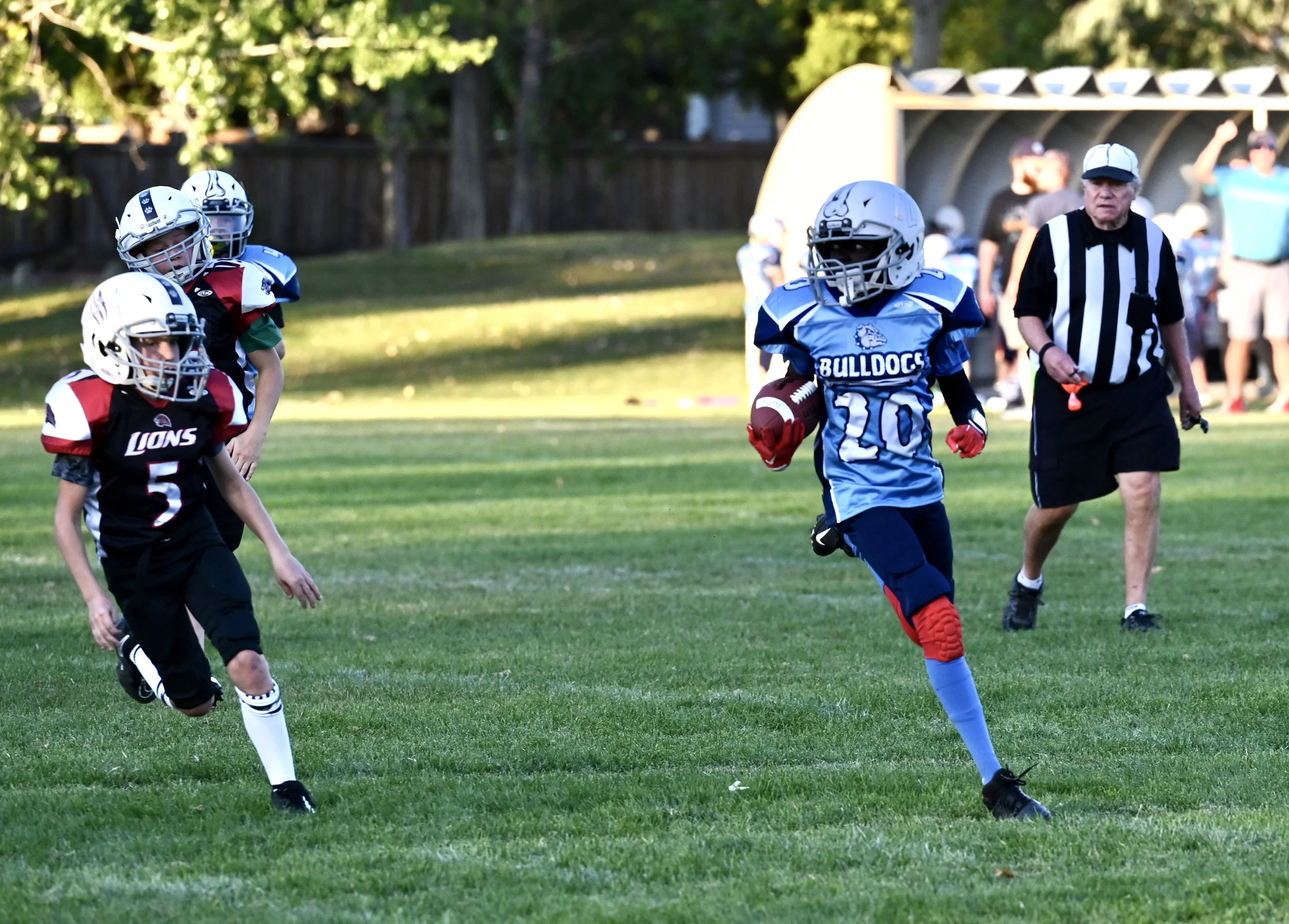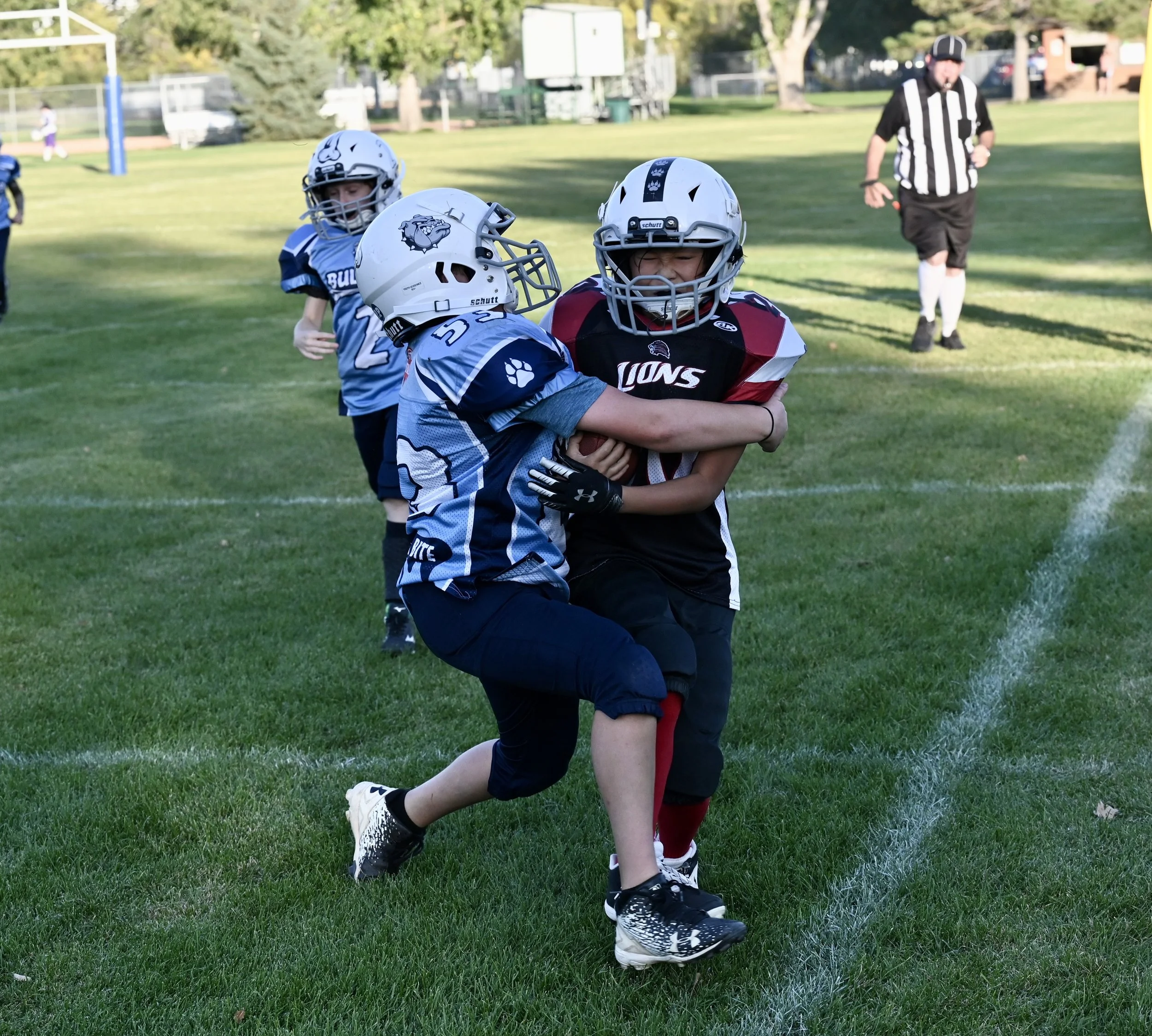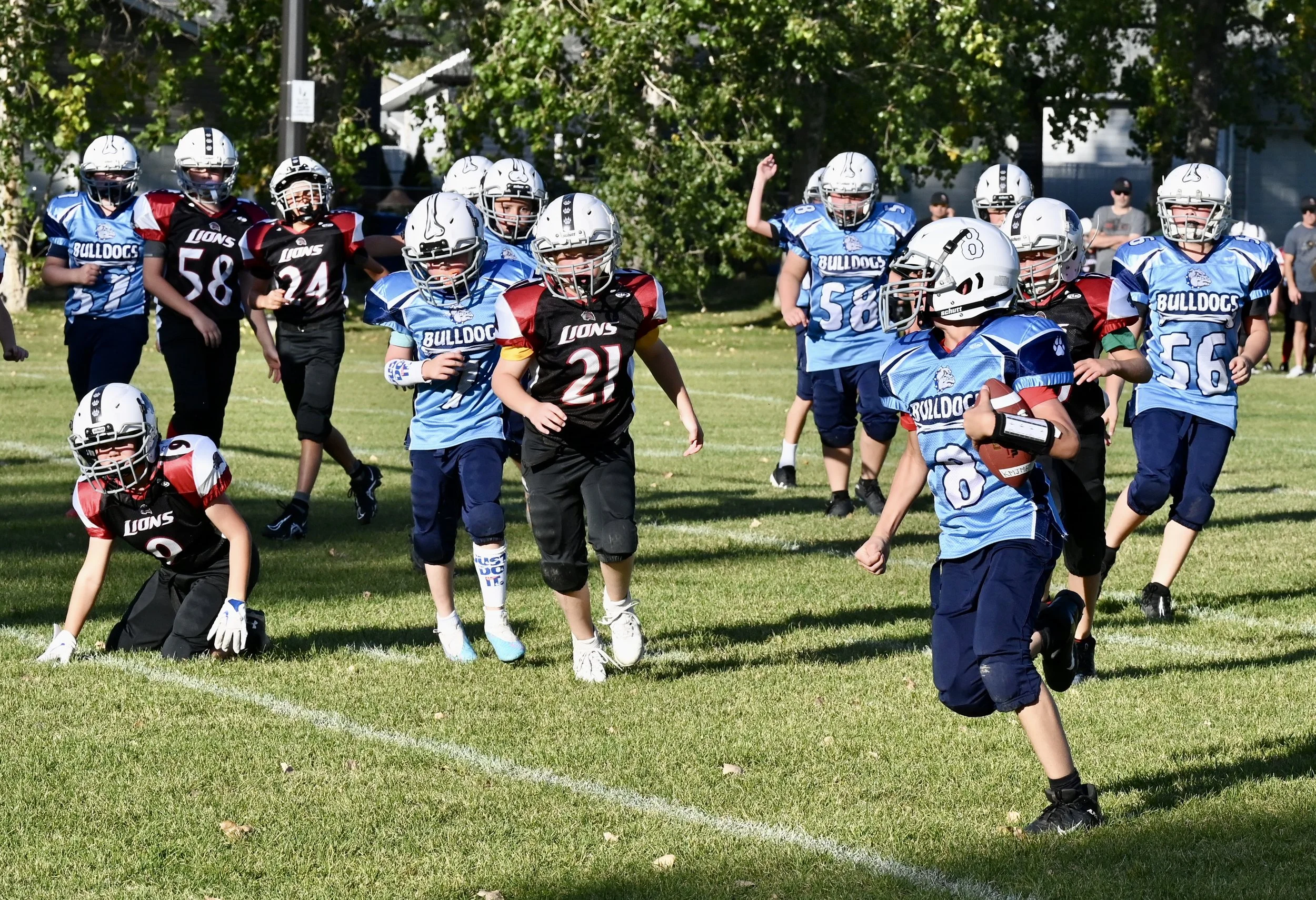 Despite four first halftime touchdown runs by the Lions speedster Bellamy Usher, where he almost literally left the nearest defenders covered in grass and his vapour trail, the Moose Jaw U12 Lions fell 60 - 42 to the Moose Jaw U12 Bulldogs in Kinsmen Moose Jaw Minor Football League action on Saturday afternoon.
