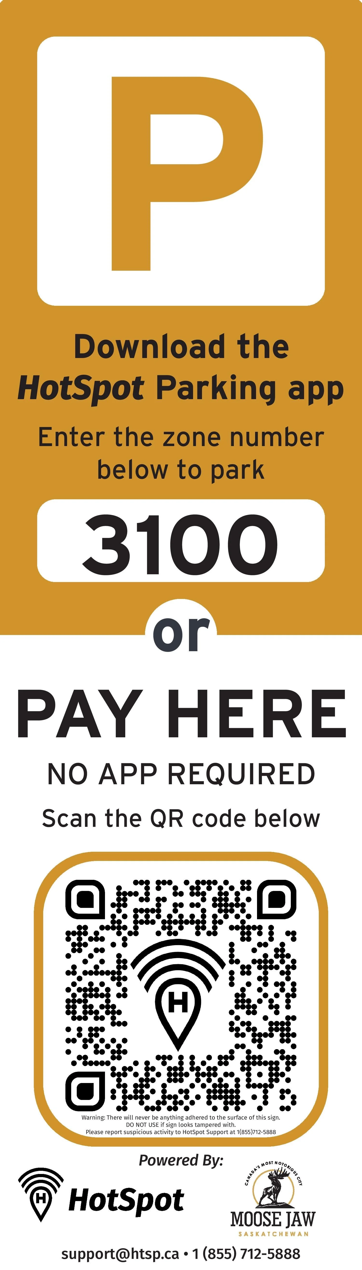 In a press release the City of Moose Jaw stated each block will have its own, dedicated parking zone number, and drivers can either download and use the City's HotSpot app to pay for parking, or scan the QR code and pay online without the app.