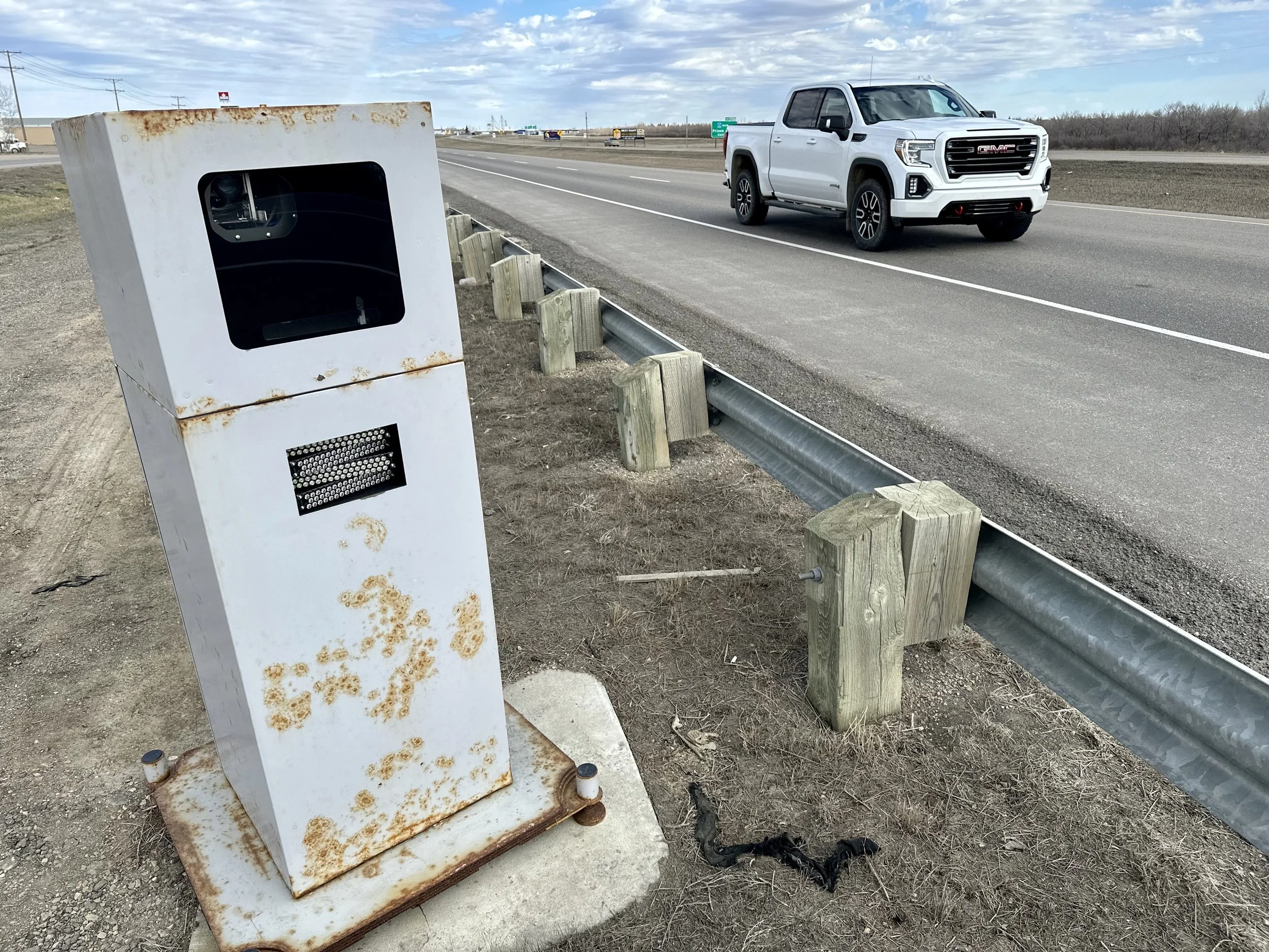 AN ELECTRONIC SPEED CONTROL RADAR UNIT SITUATED ON THE TRANS CANADA HIGHWAY - MJ INDEPENDENT PHOTO