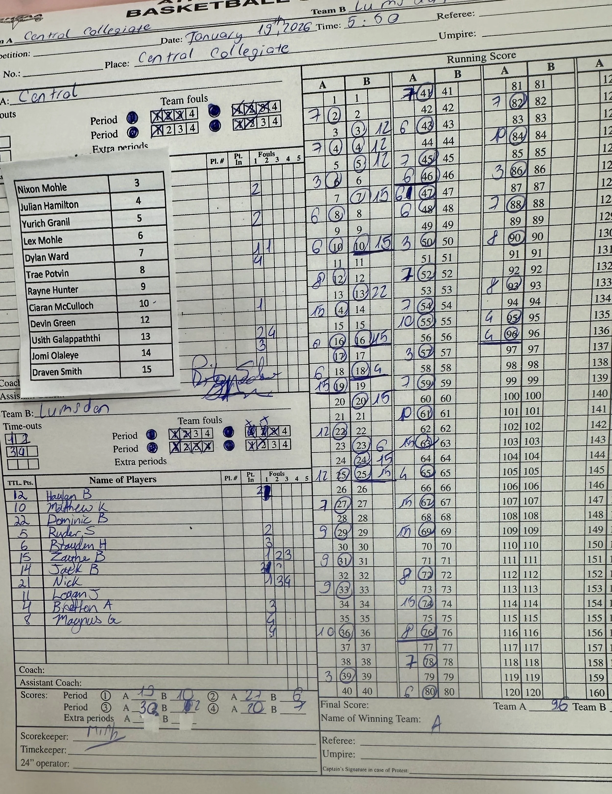 The Lumsden Devils Junior Boys basketball team may have drove into Moose Jaw in a bind looking for a win but the Central Cyclones outplayed the visitors for a 96 - 26 victory.