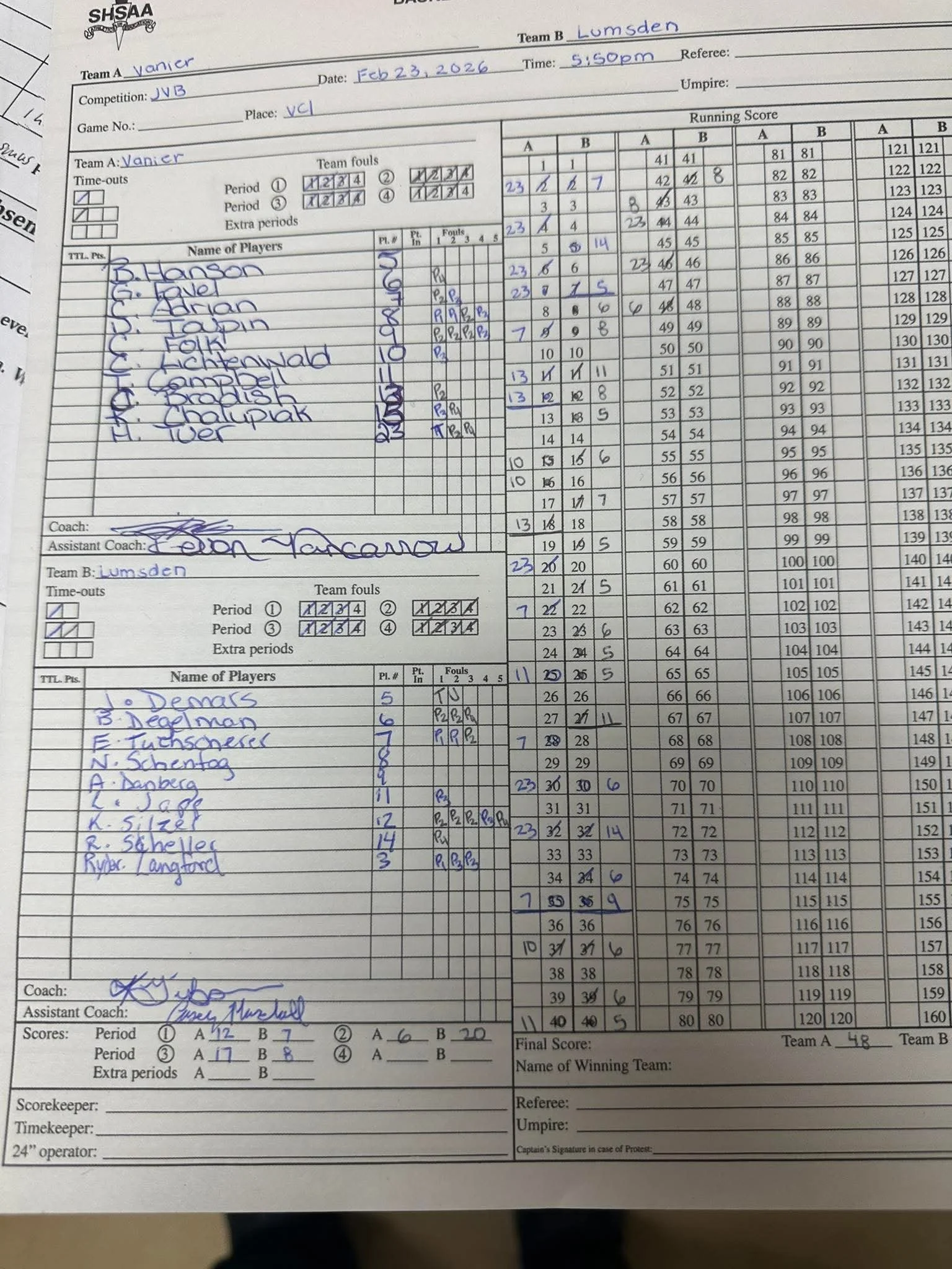 The Vanier Vikings JV Boys basketball team defeated the Lumsden Devils 48 - 42 in quarter final playoff action on Monday evening.