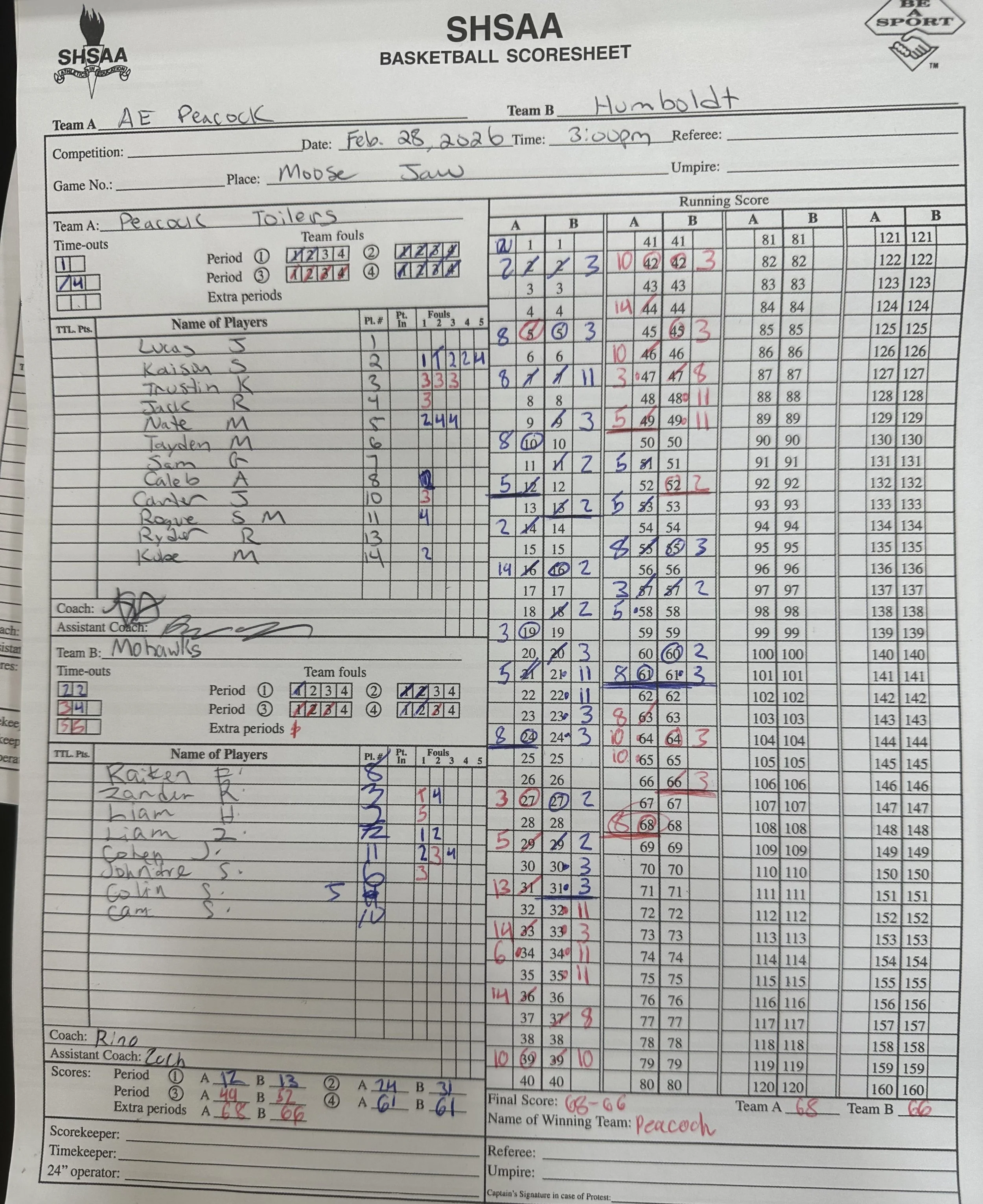 Last second dramatics saw the Peacock Toilers grab victory from the jaws of defeat in a nail biter versus the Humboldt Mohawks.