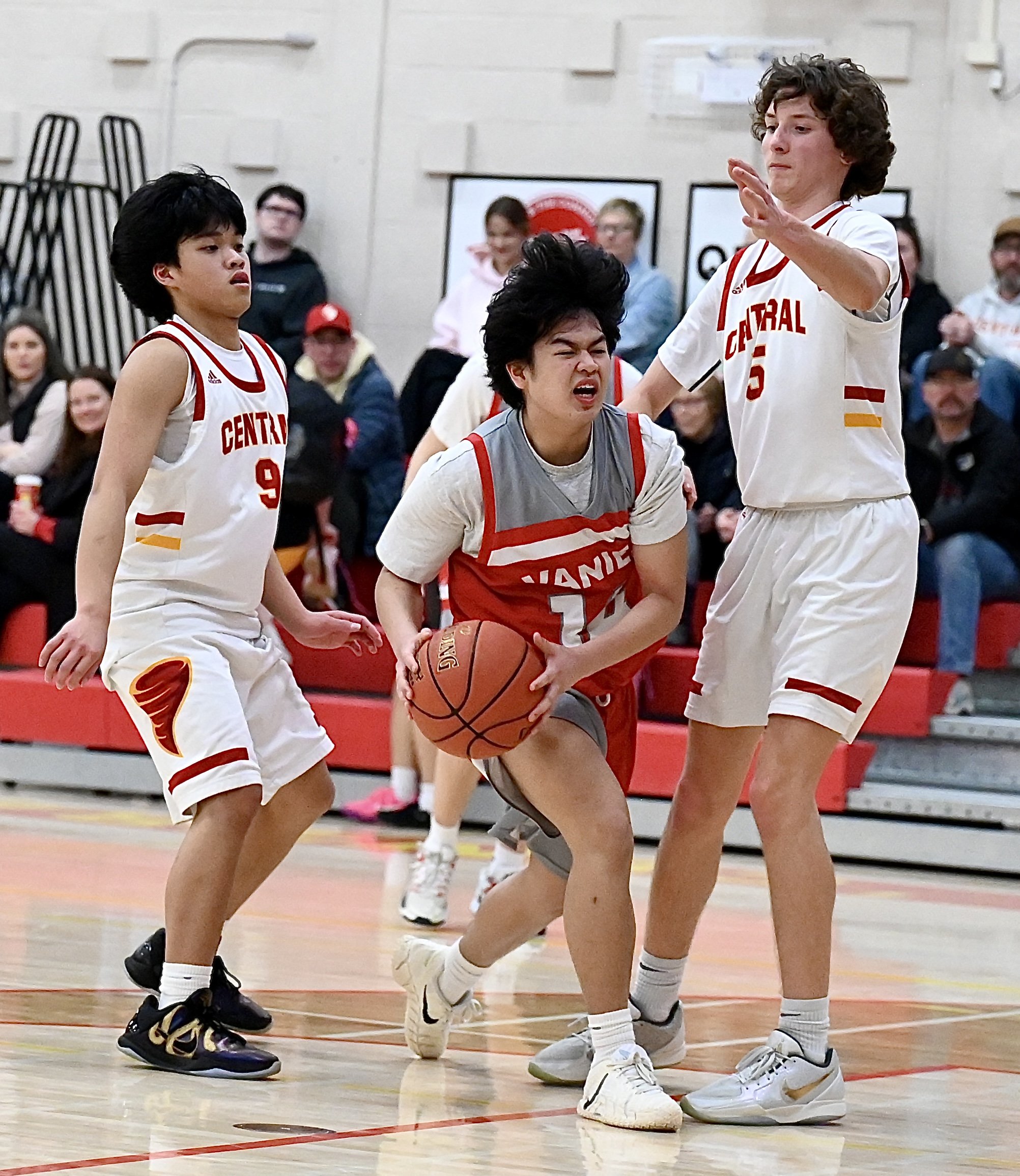 Despite being told by the coaches to “wake up” during the second quarter the Central Cyclones senior boys basketball team were able to go on to dominate and defeat the Vanier Vikings 94 - 41 on Tuesday evening.