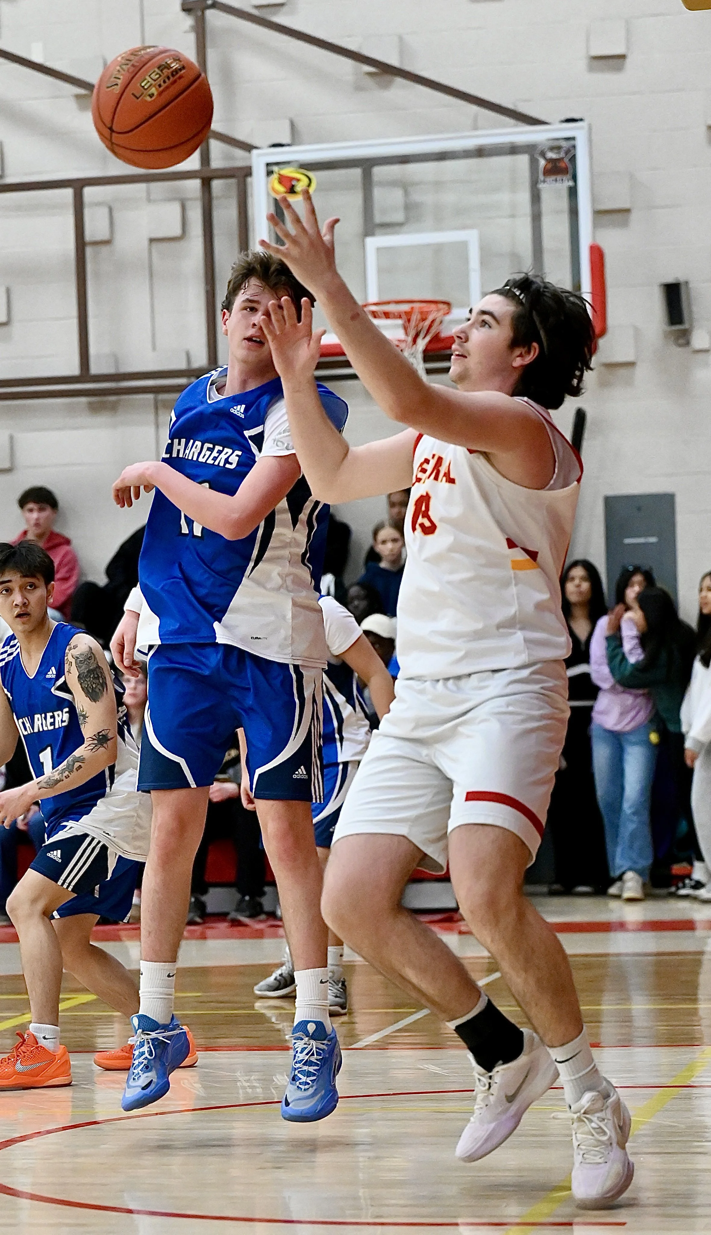La Ronge Chargers Owen Graham comes up with a defensive rebound - MJ Independent photo