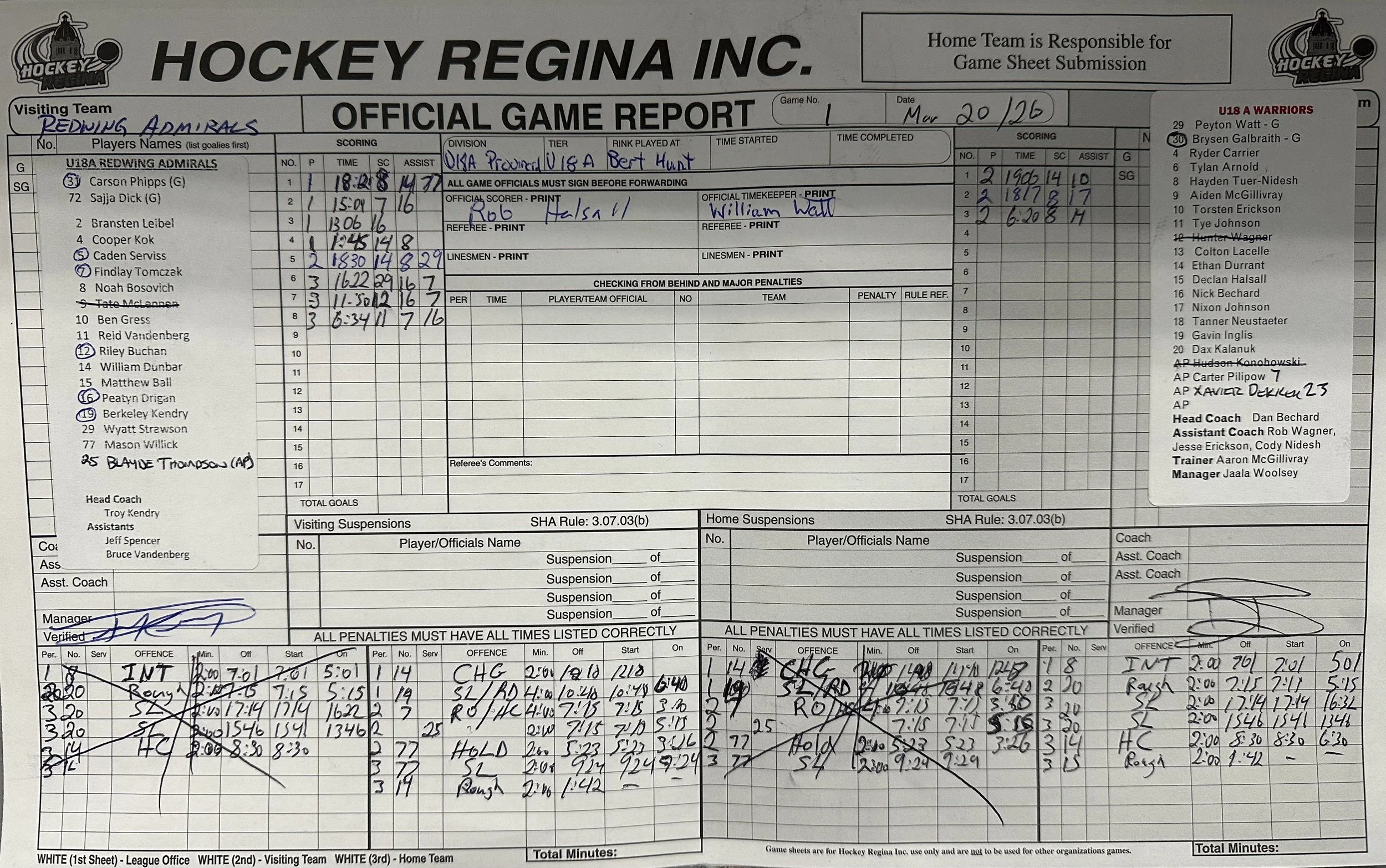 The Warriors fought back when Hayden Tuer-Nidesh scored at 18:17. Nixon Johnson assisted.