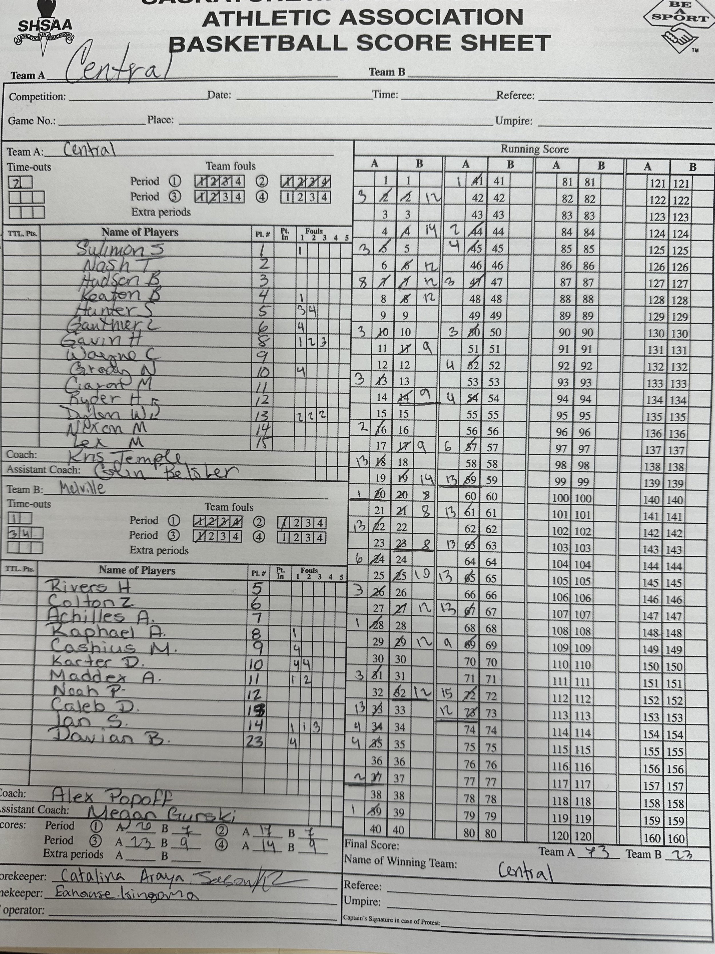 Central Cyclones head coach Cris Temple said the team accomplished their goals in the game.