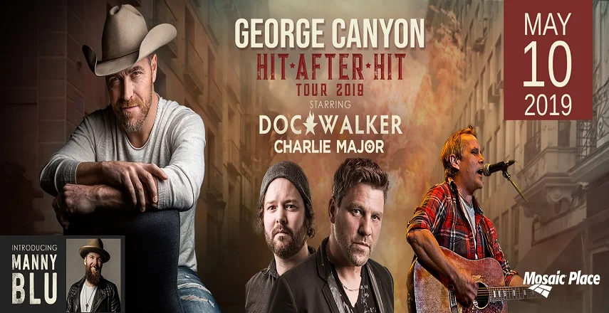 If you are a fan of country music and love to see concerts at Mosaic Place then there is a treat for you Friday Evening at Mosaic Place as Juno Award winning country star George Canyon will be performing.