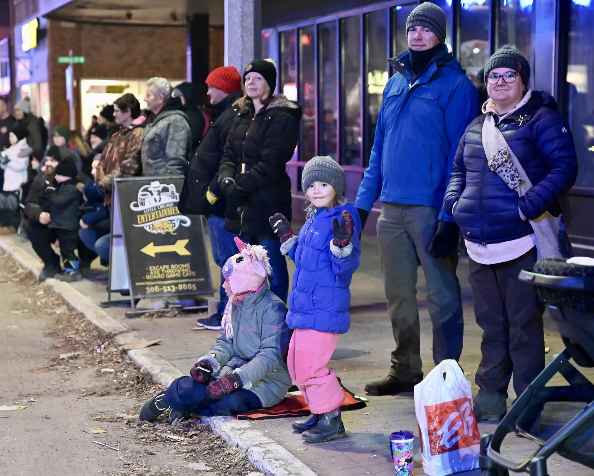 Hundreds of people, many families with smaller children, gathered on Main Street North as the Moose Jaw Kinsmen Club held their annual Santa Claus Parade on Sunday evening.