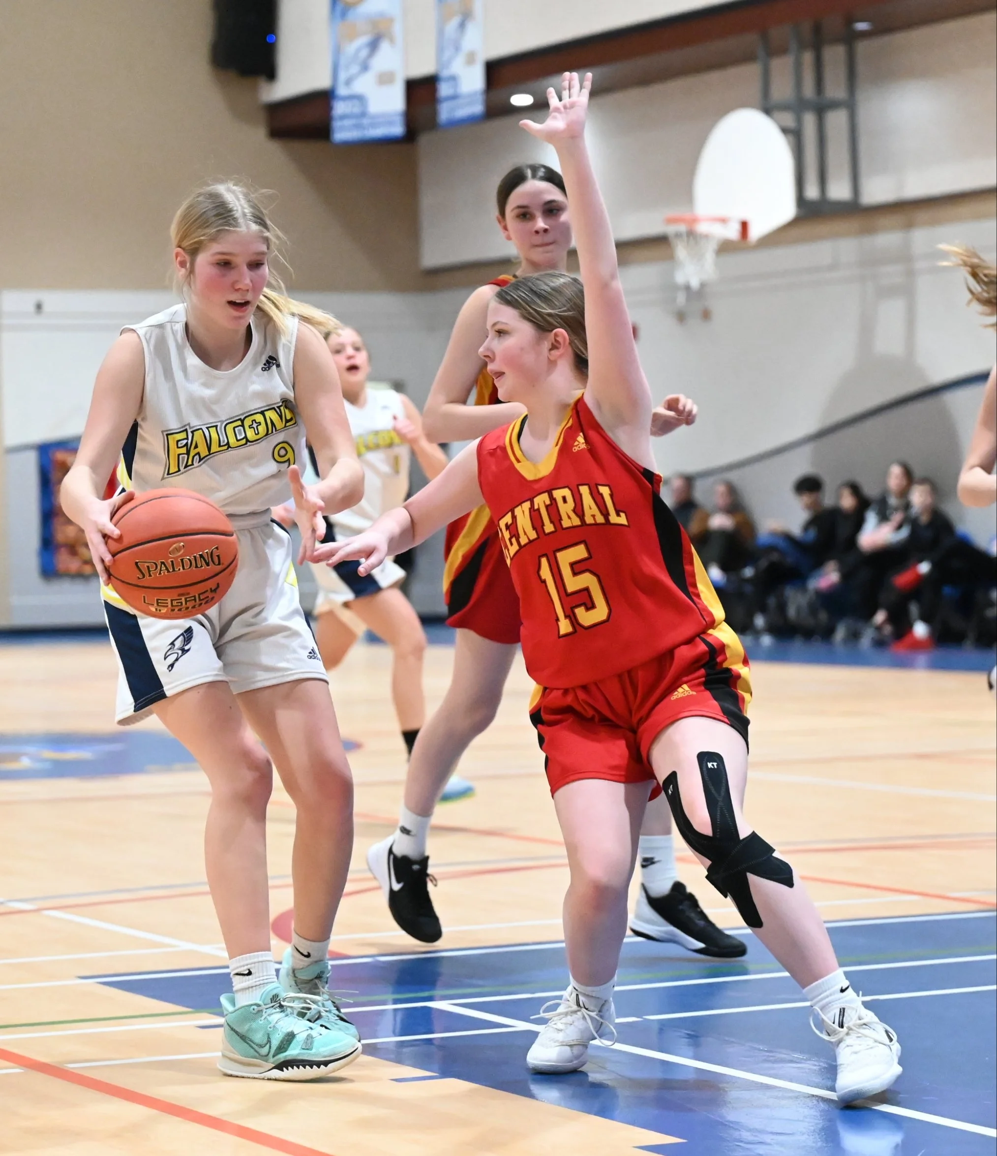 The second first was it was the Falcons first victory of the season as they defeated the visiting Central Cyclones 62 - 59 in a junior girls - junior varsity basketball matchup.
