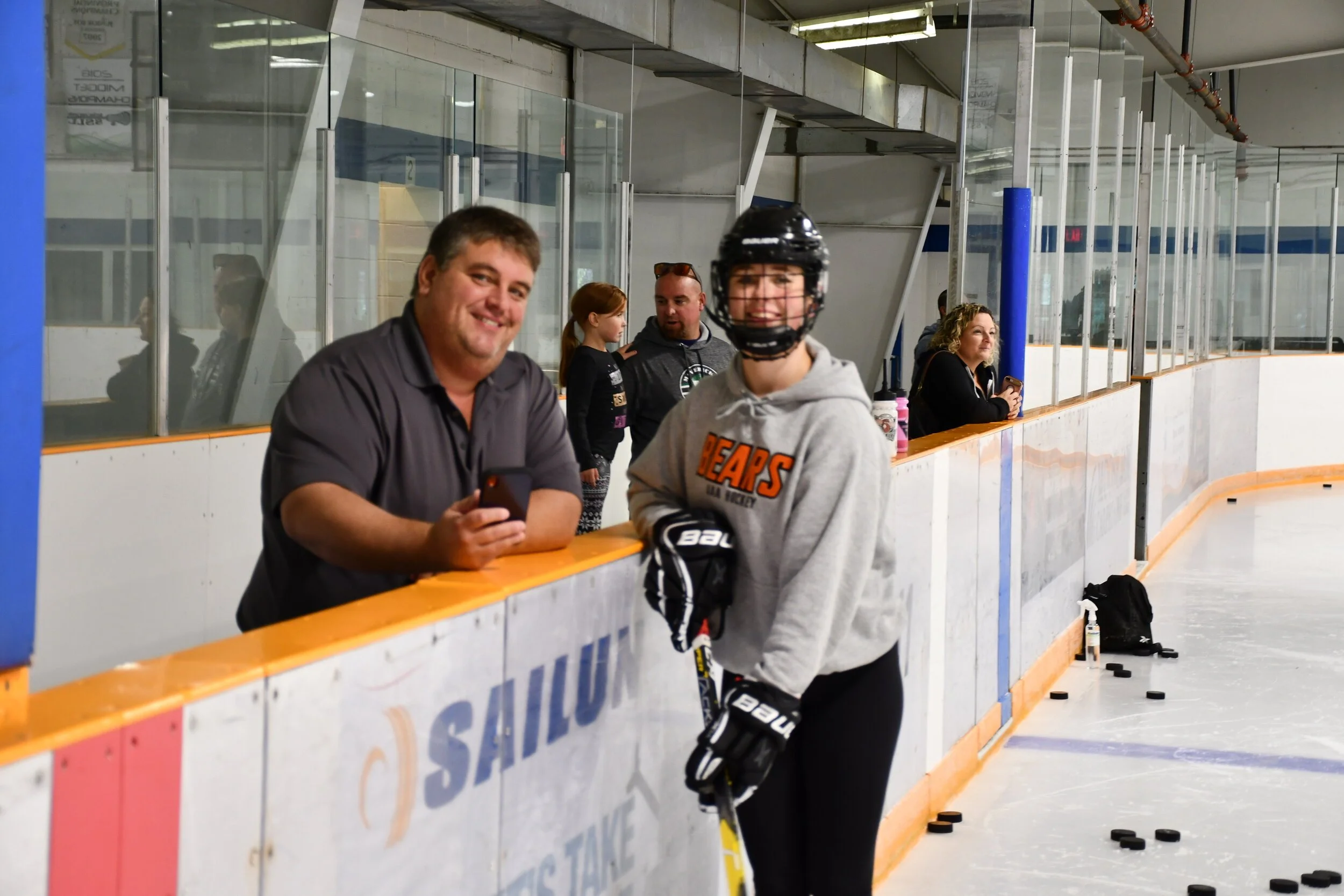 Shawn Kohl with daughter Jasmine Kohl are pictured when she returned to Moose Jaw to help out with a Mavericks program to help develop player skills and encourage more girls to play hockey - MJ Independent file photo
