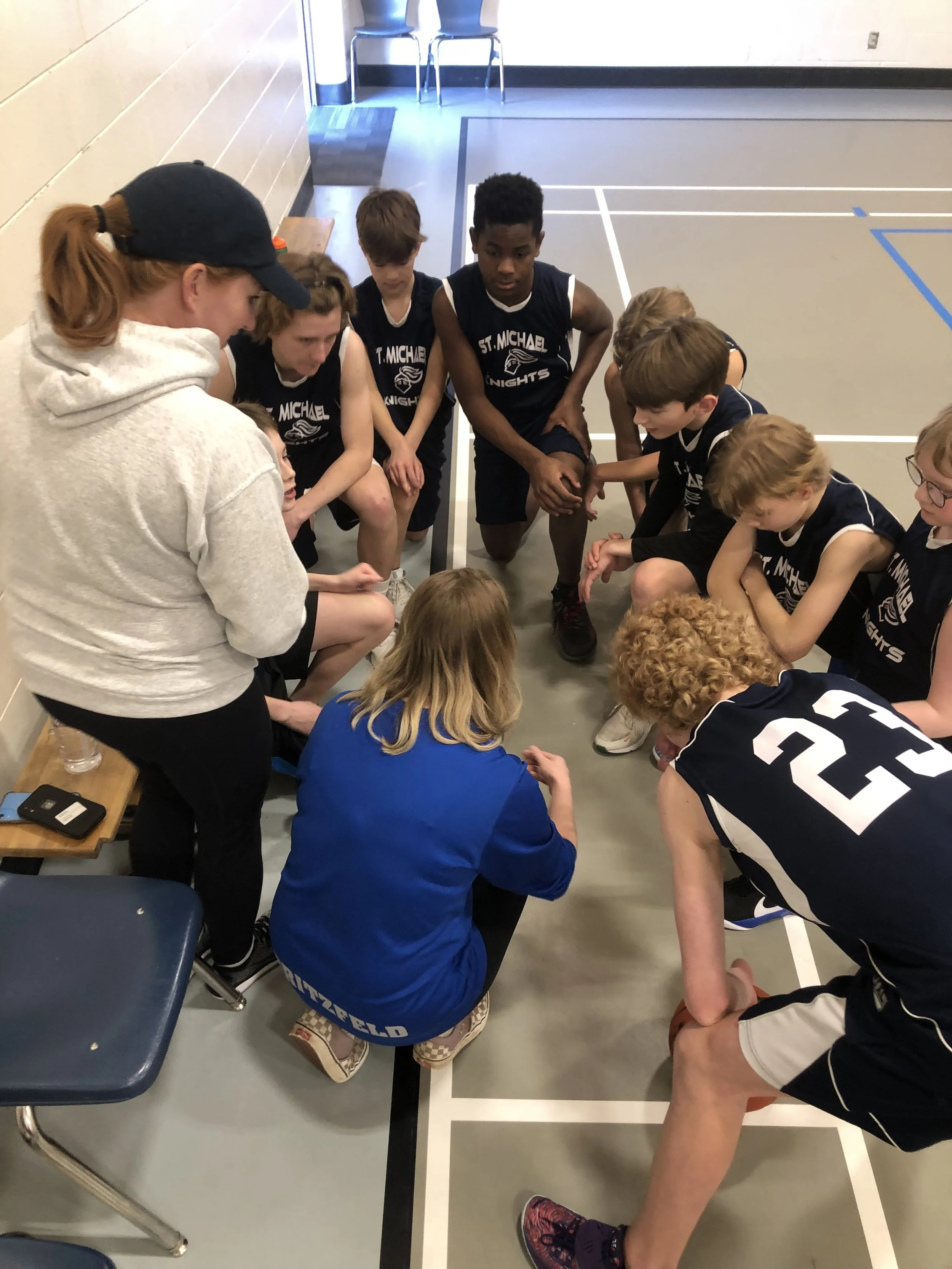 St Micheal's Knights boys team during a time out - submitted photo