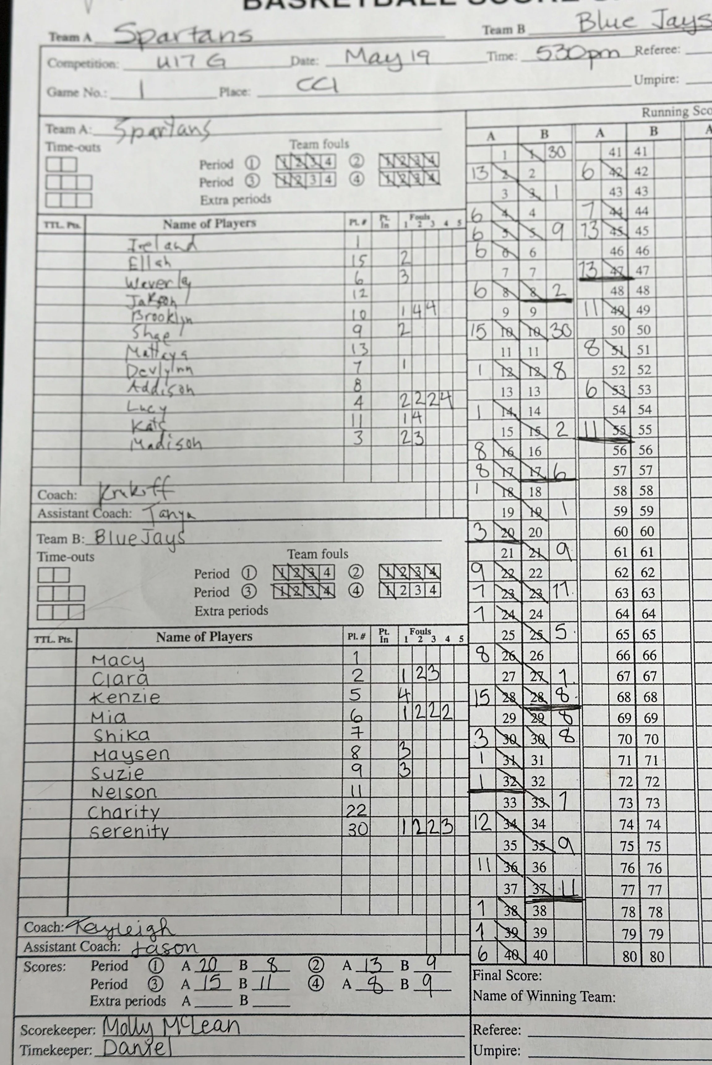 The Spartans were able to outscore the Blue Jays 12 to 9 in the second quarter leaving the at half time 32 - 17.