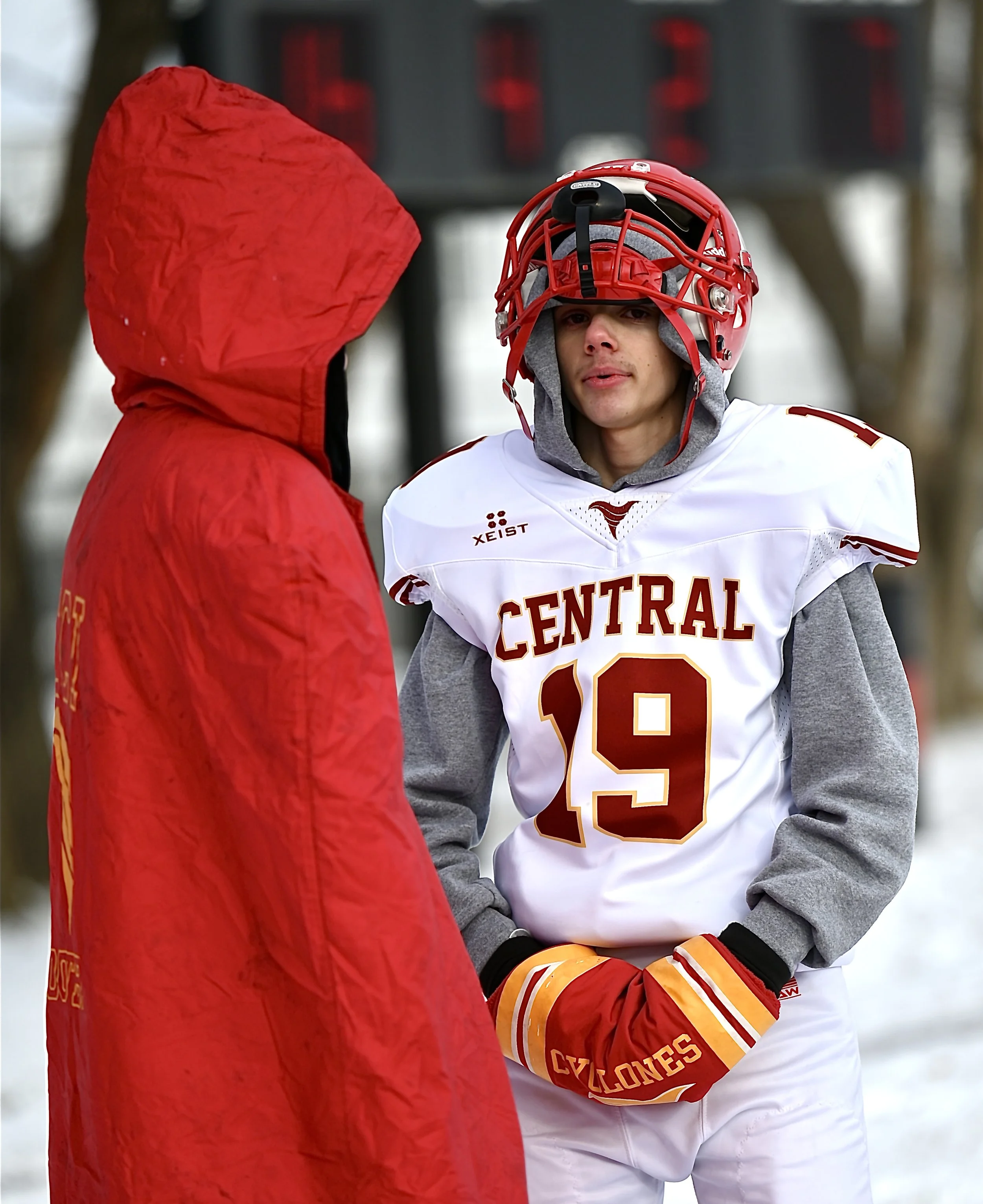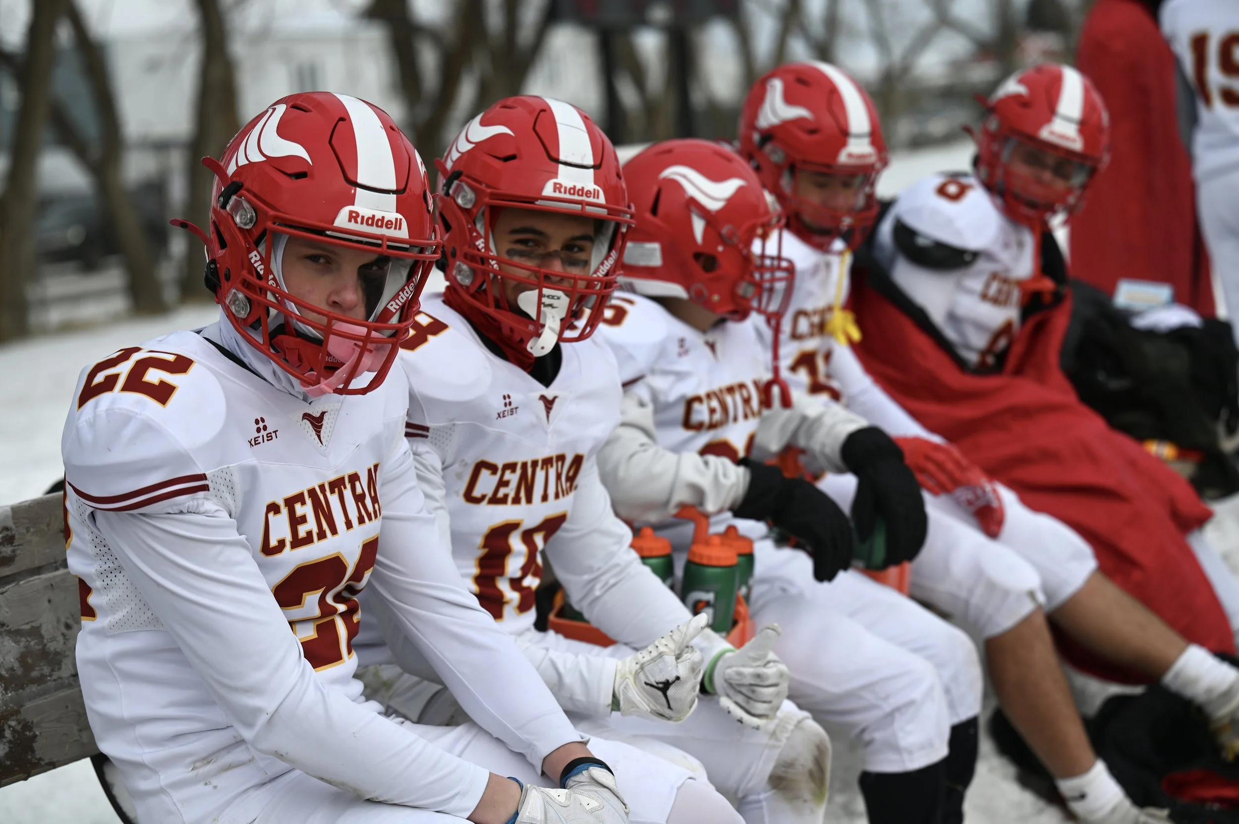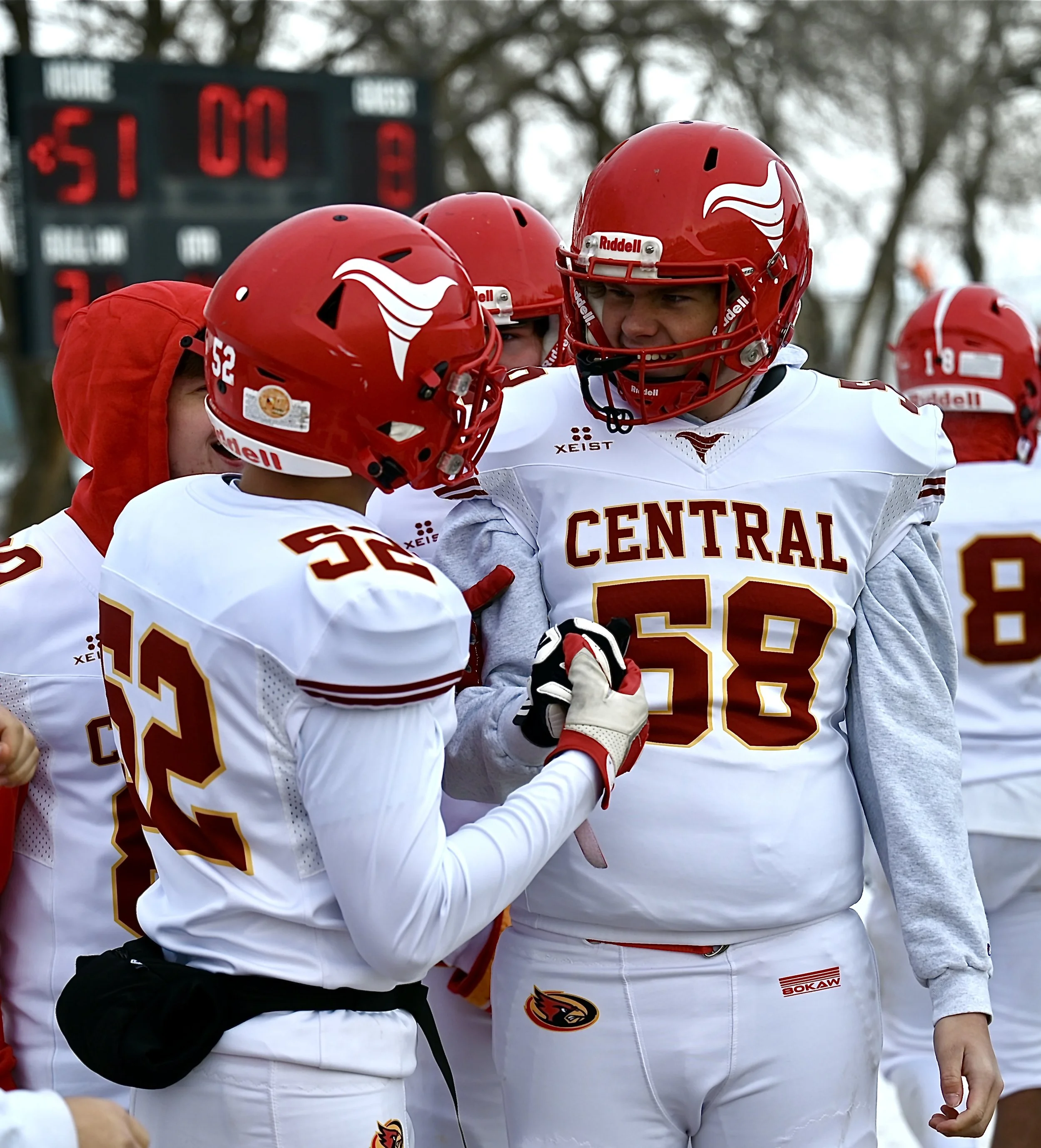 Central Cyclones linebacker Draven Smith (left) and offensive lineman Rykker Campbell on the bench - MJ Independent photo
