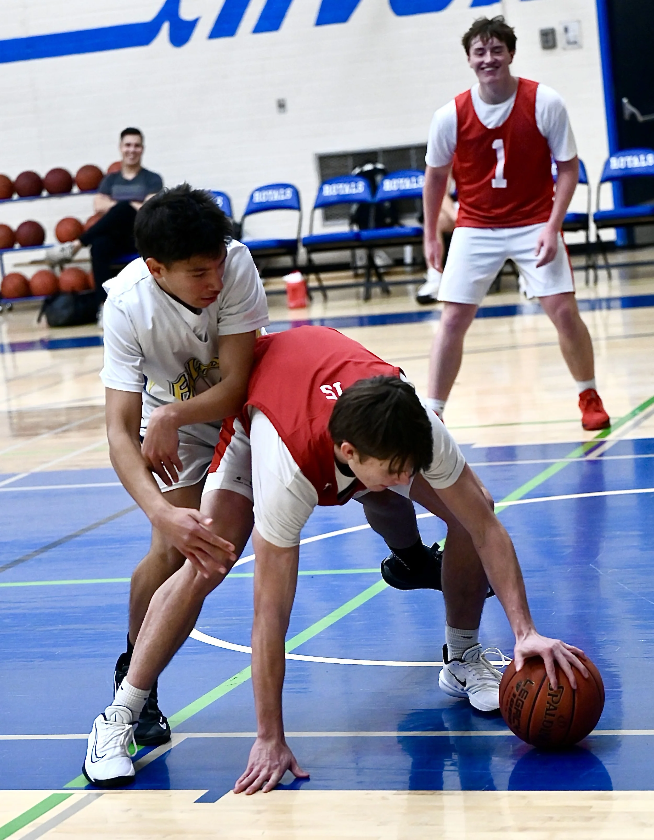 “We’ve got a couple of pretty good ball handlers. Seth Kohl in grade 10 is pretty good ball handler. He’s been aggressive and comfortable with everything. We’ve got Matias Alvarez who hit a shot from 40 feet today. He’s a really hod shooter and works on it everyday at lunch.”