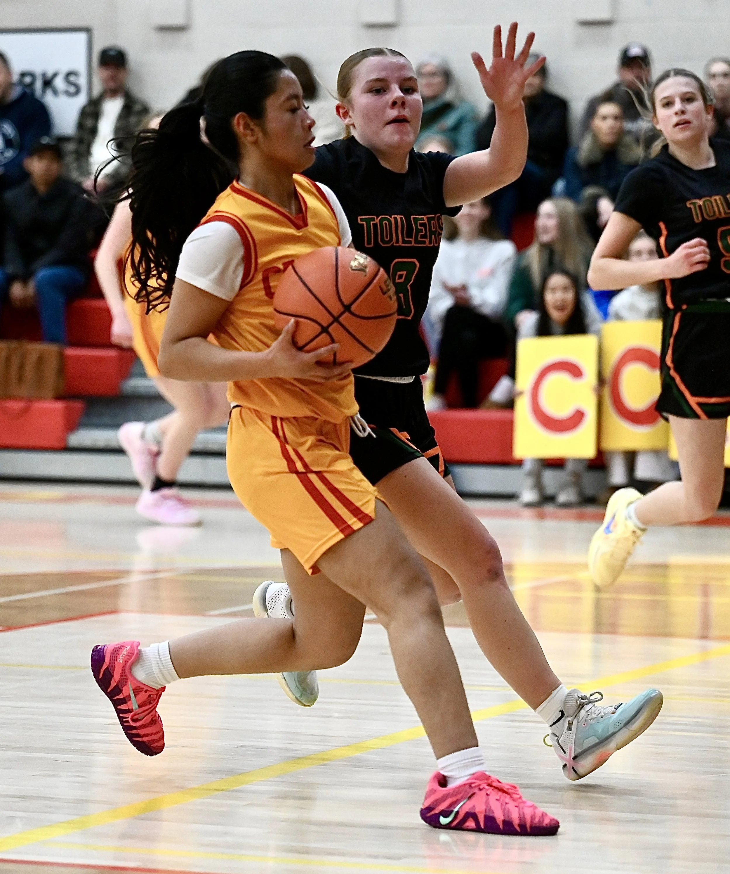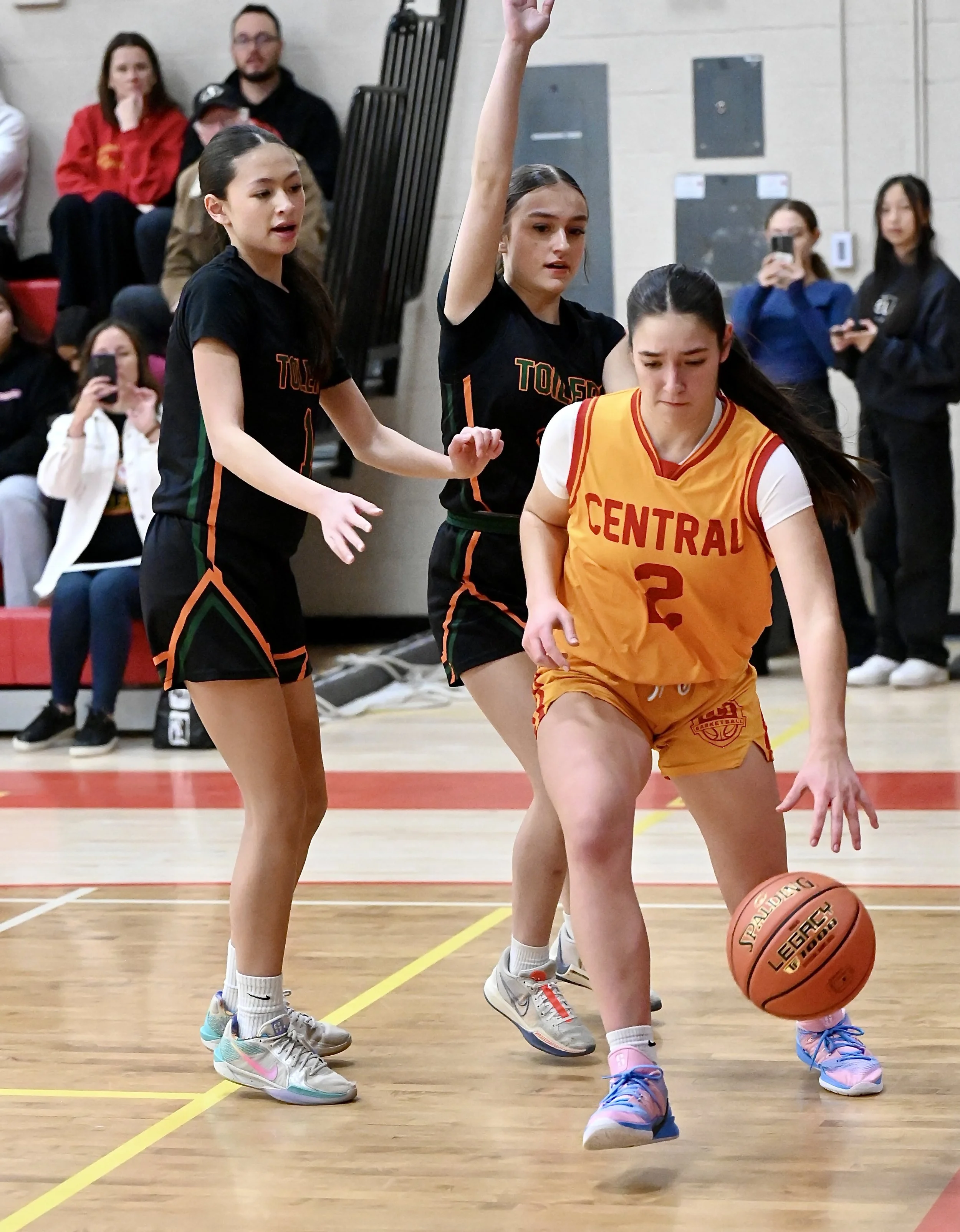 They fans may have mixed up their signage but it didn’t take long for the Central Cyclones senior girls basketball team to get aggressive against the Peacock Toilers.