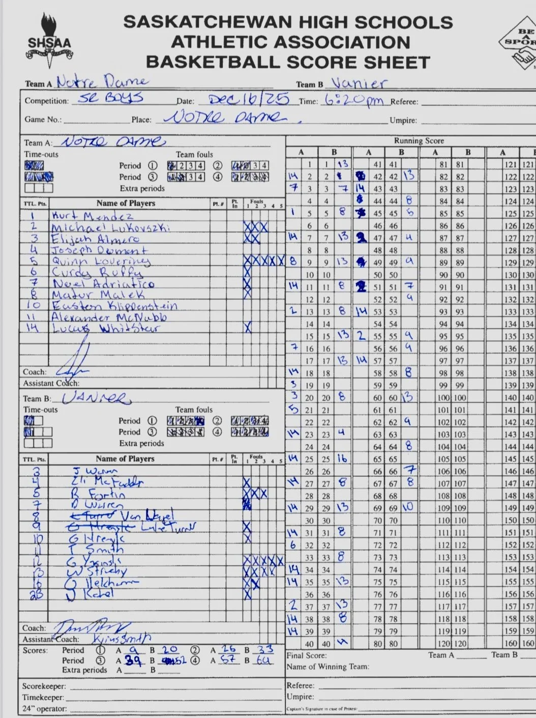The Notre Dame Hounds senior boys basketball team were defeated the Vanier Vikings 57 - 69 on Tuesday evening.