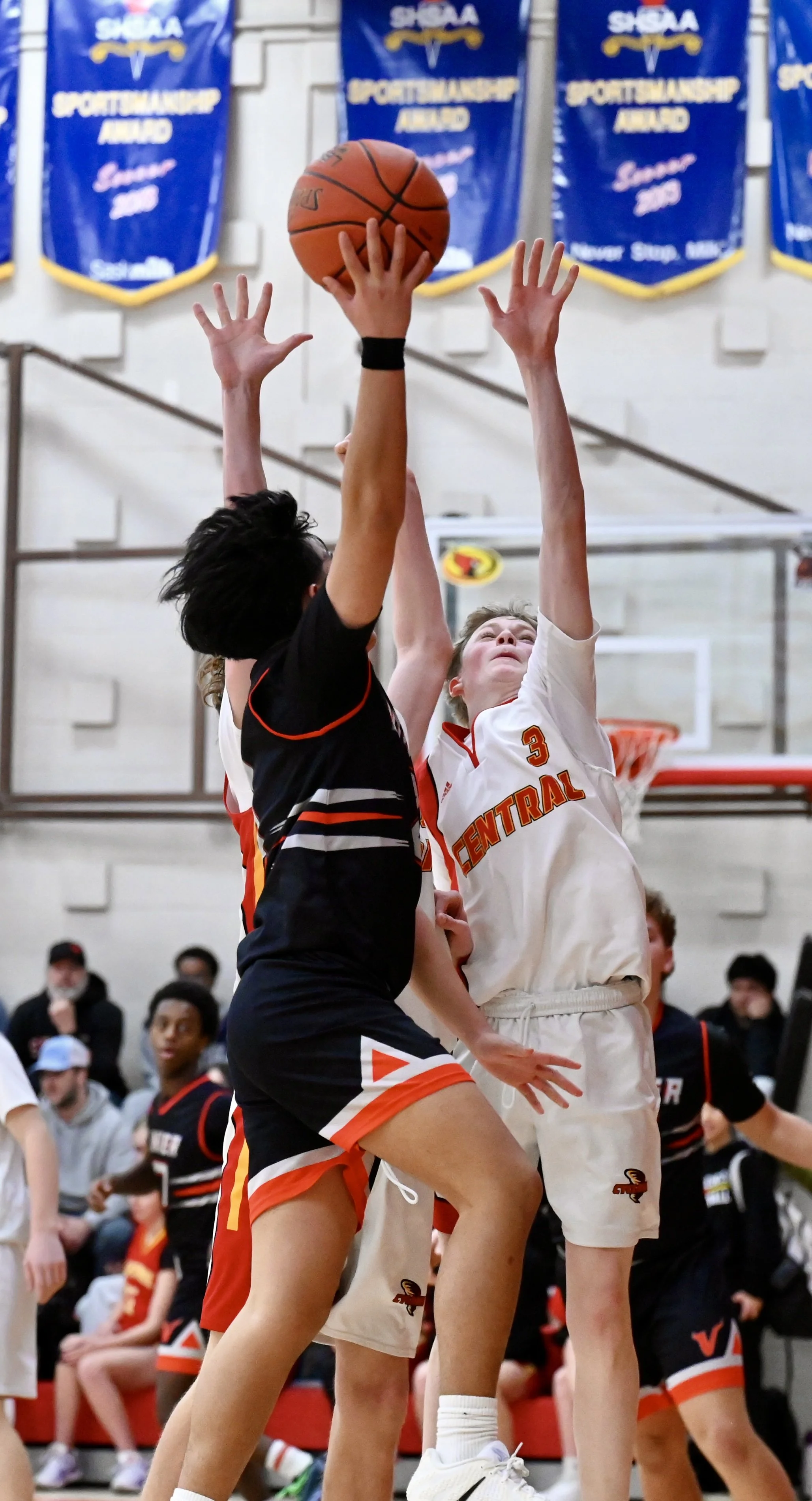 Central’s Nixon goes up to block a shot - MJ Independent photo