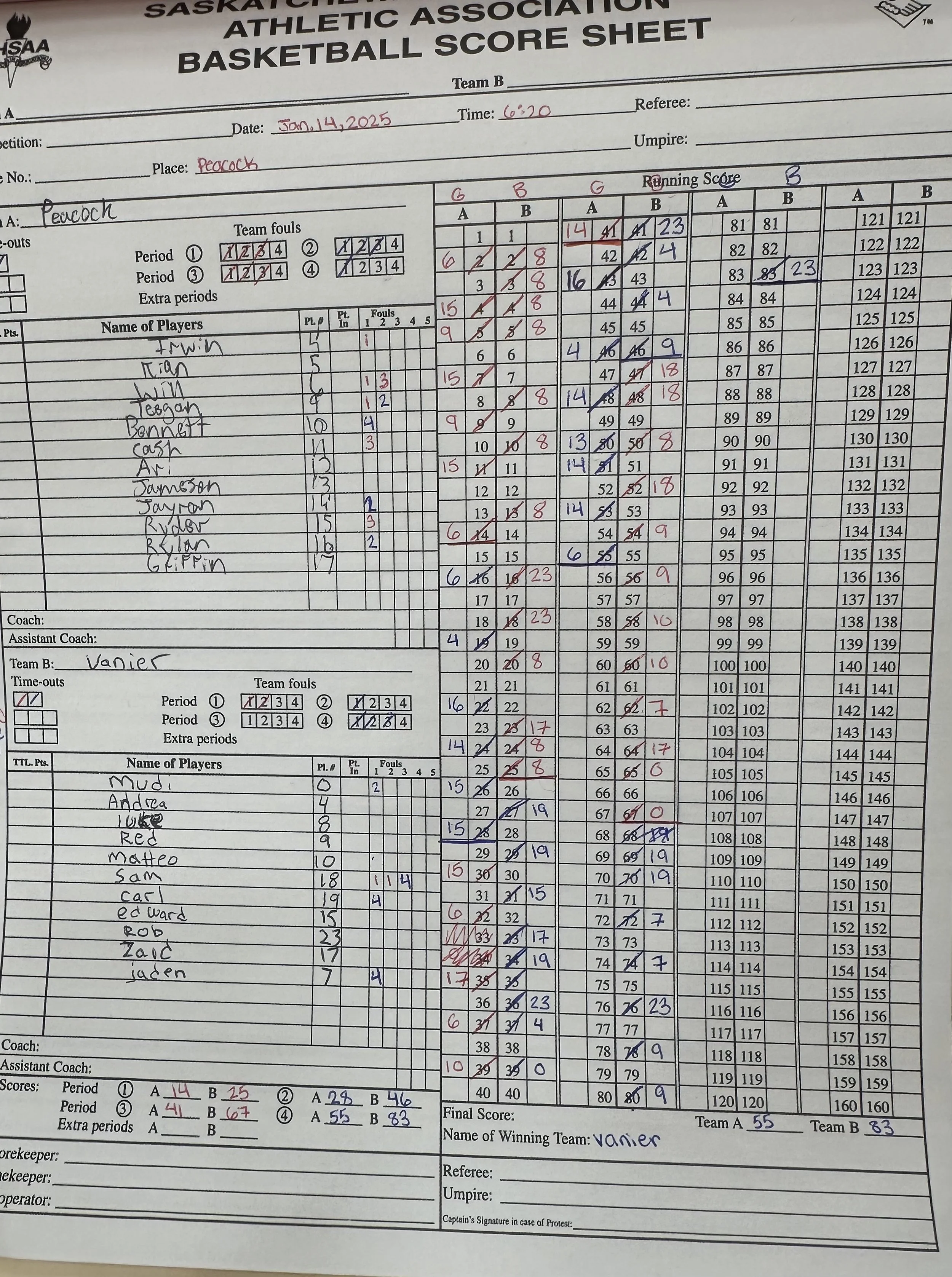 And correct they did as they defeated the Peacock Toilers green team 83 - 55 on Wednesday evening.