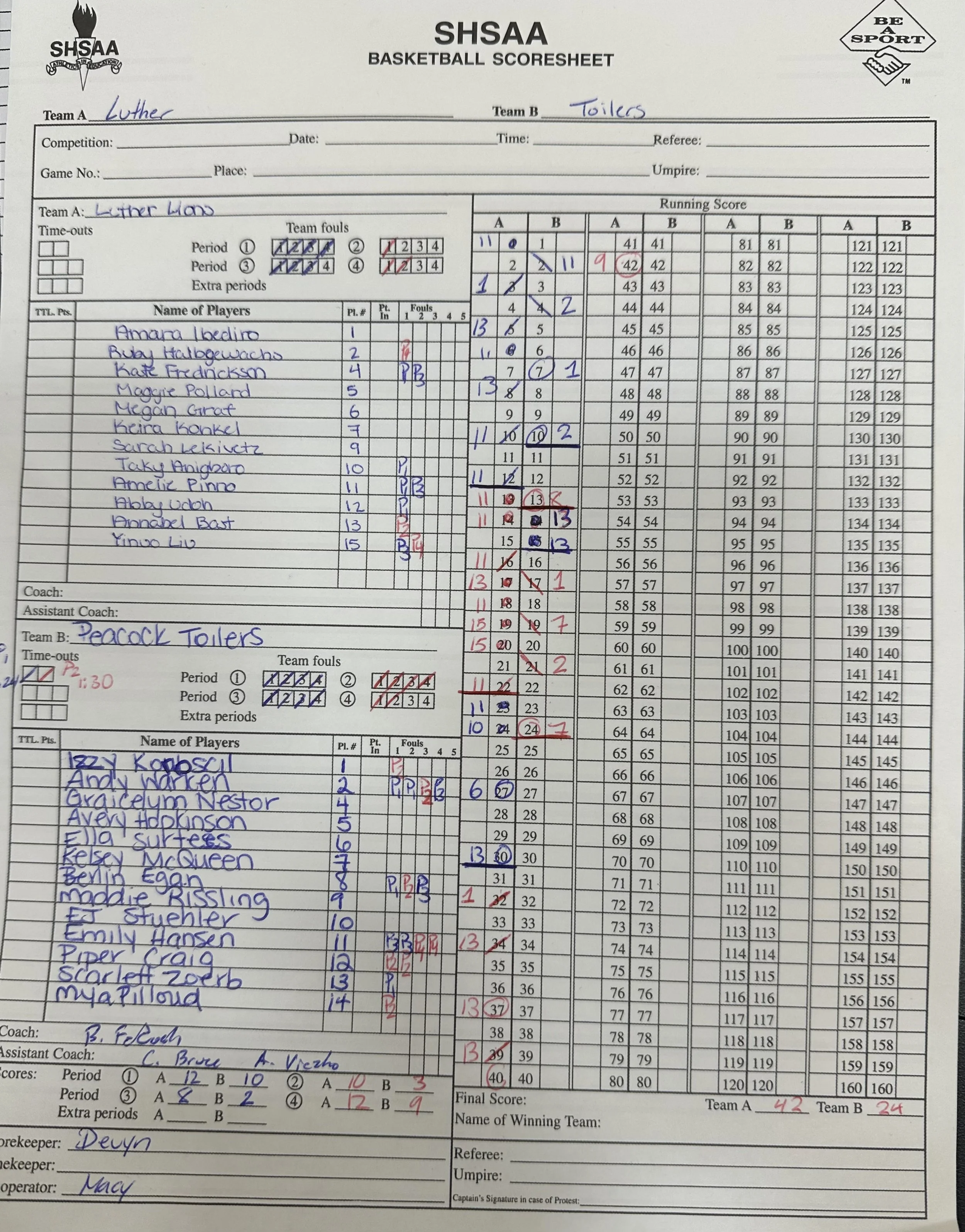 The final score was Luther Lions 42 and the Toilers 24.