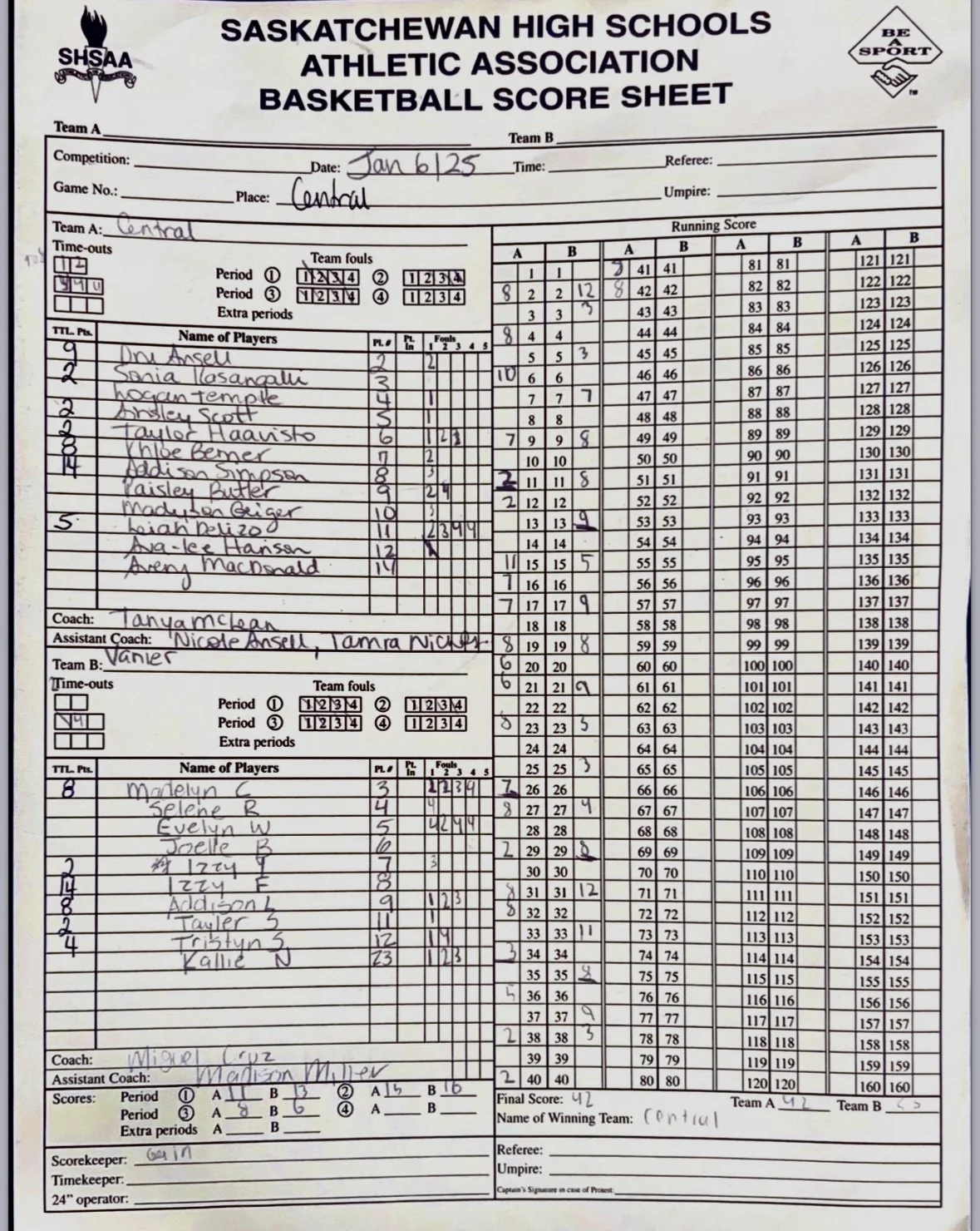 It was a big evening for the Central Cyclones senior girls basketball team as they defeated the Vanier spirits 42 - 38 in a lower scoring defensive battle.
