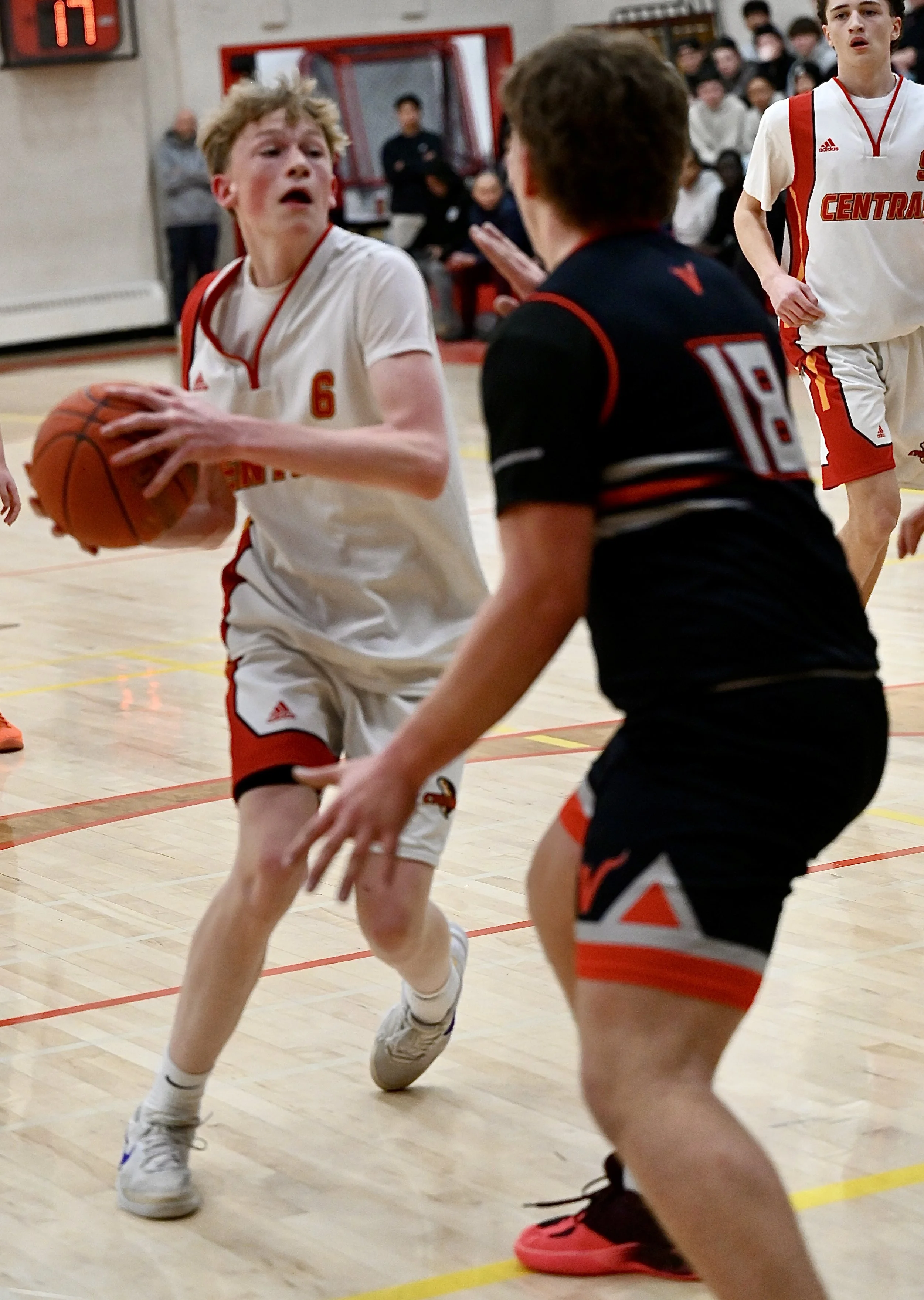 Emotions ran high as the Central Gymnasium reached the boiling point as the Central Cyclones turned up the heat in the latter portion of the second half to claim the city league junior boys basketball title 100 - 83 over the Vanier Vikings.