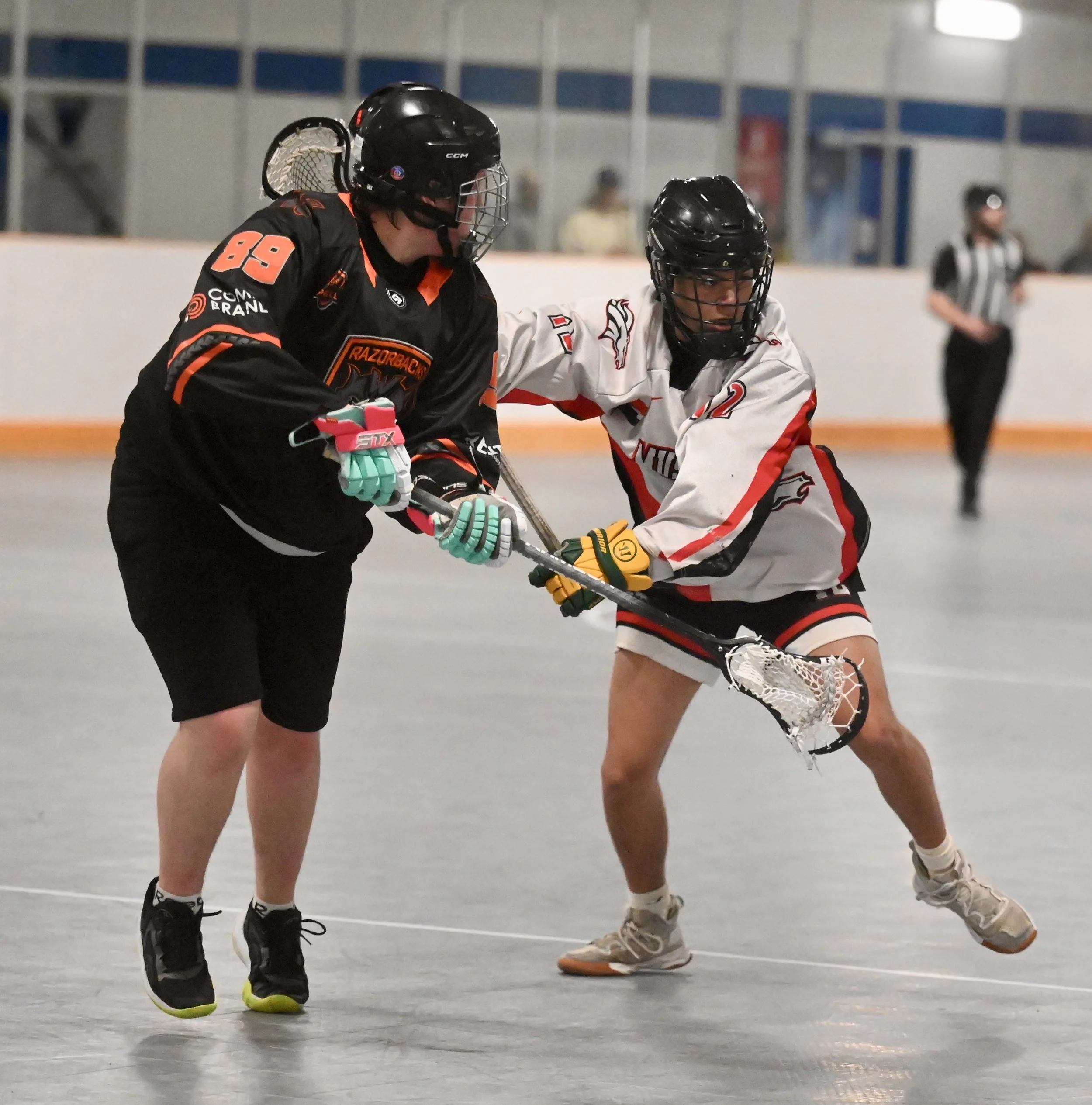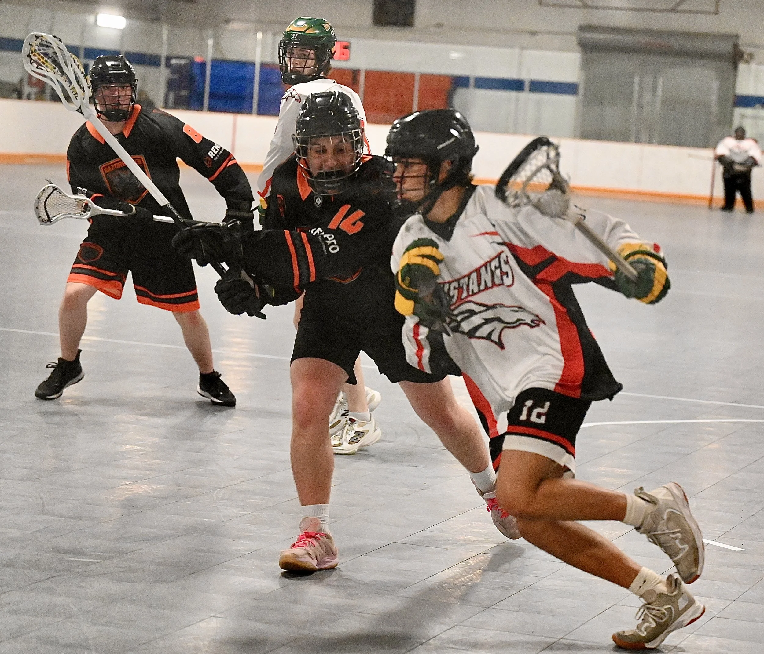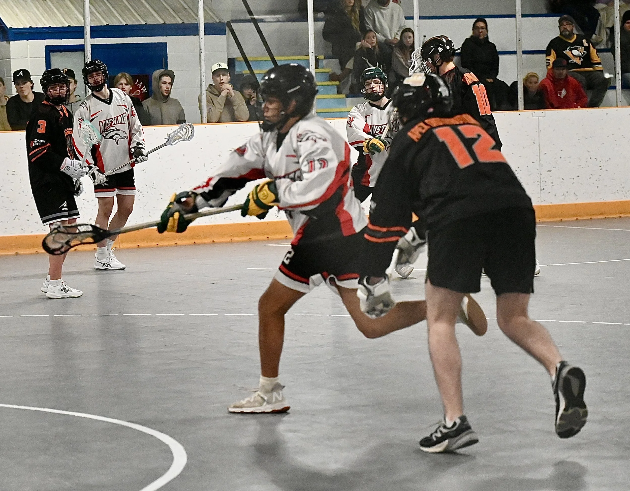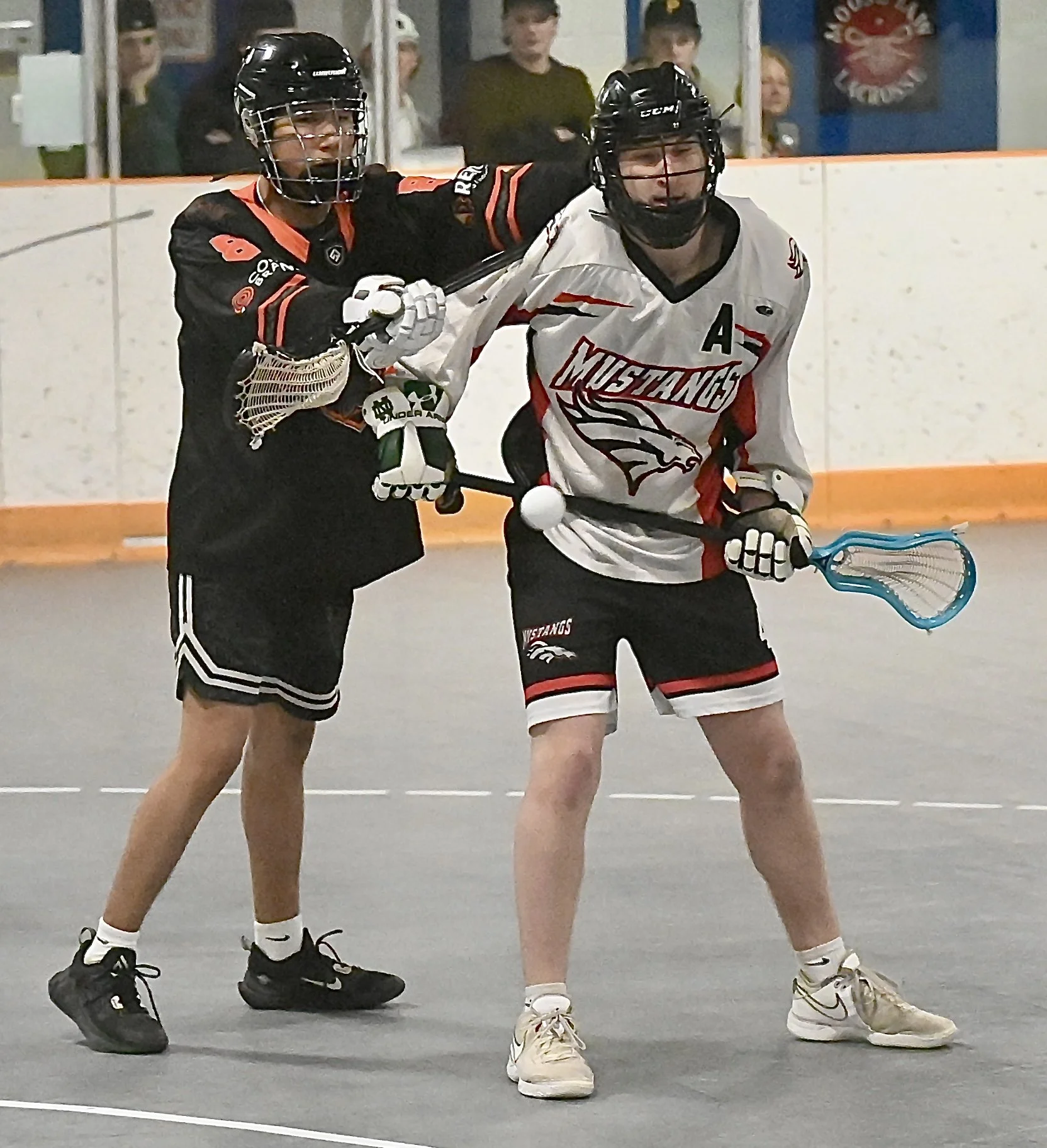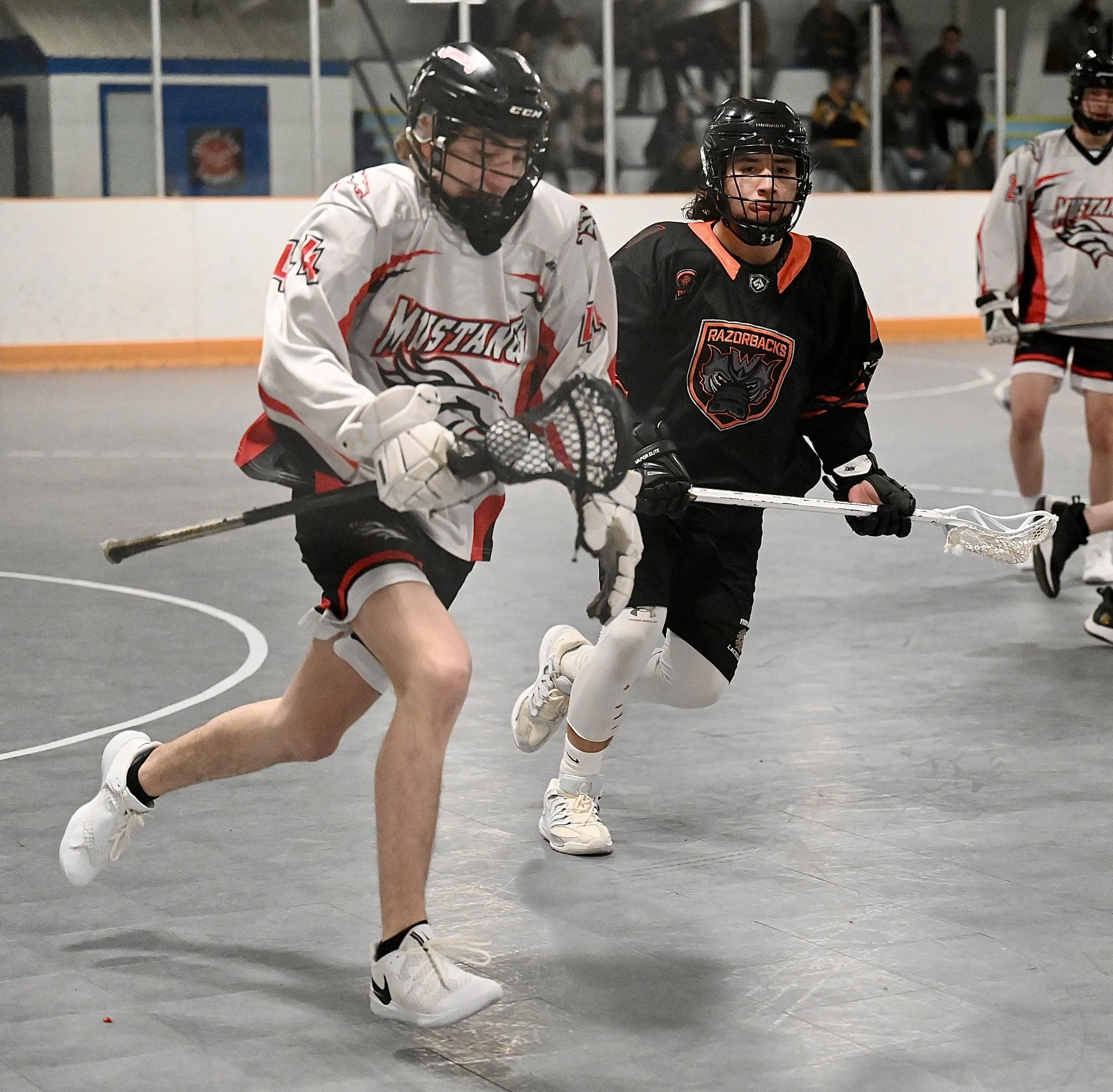With a ten goal first period the Moose Jaw Mustangs junior lacrosse team never looked back as they defeated the Weyburn Razorbacks 21 - 3 in Prairie Gold Lacrosse League action.