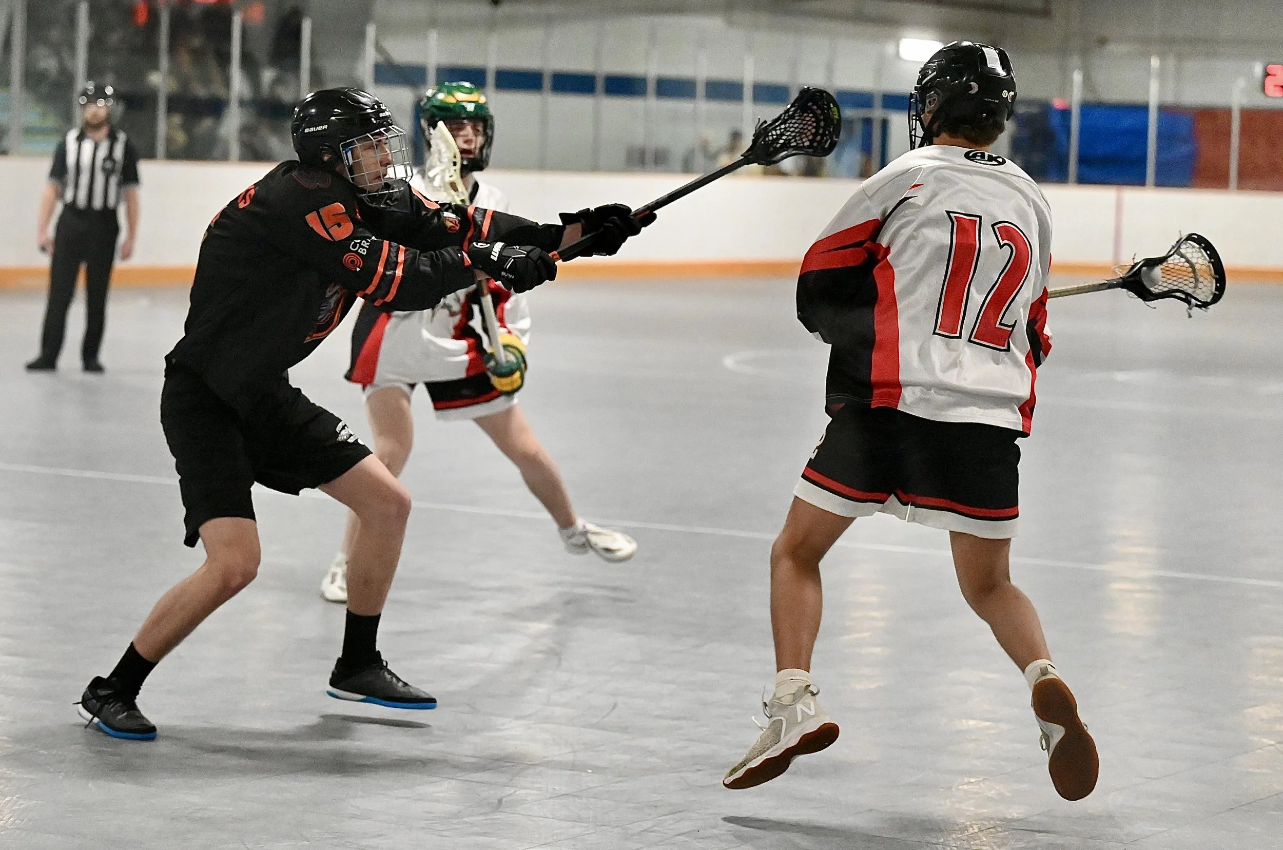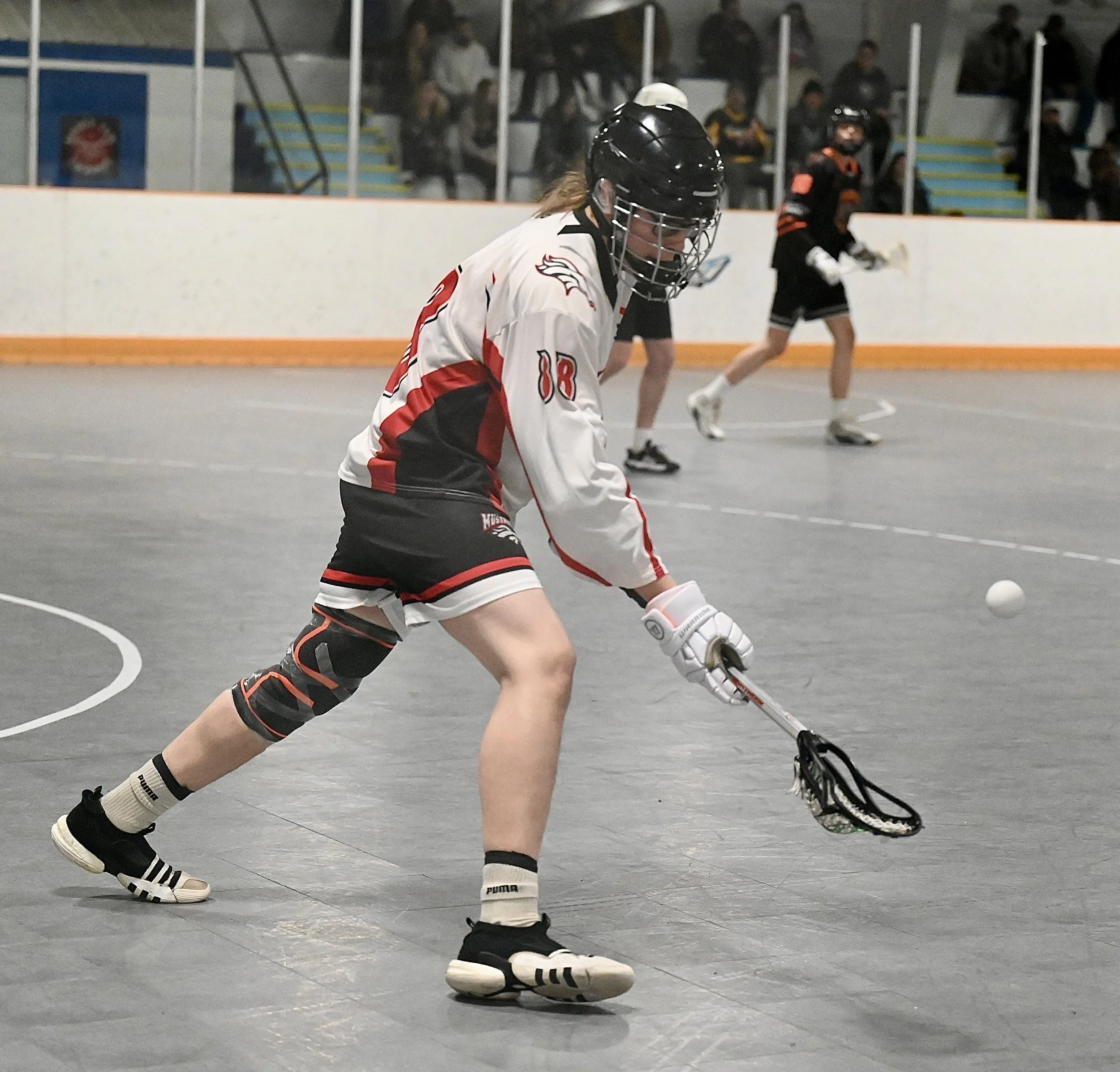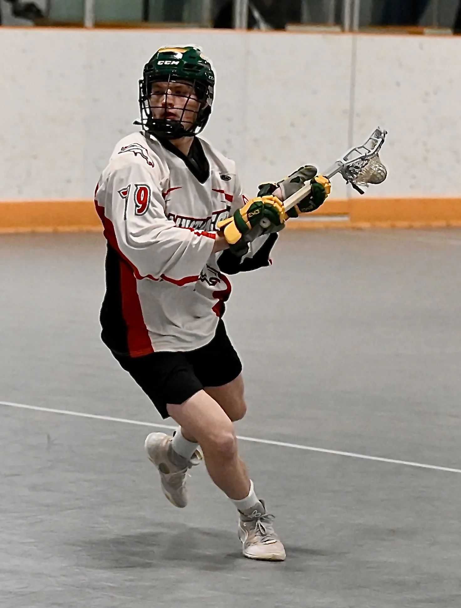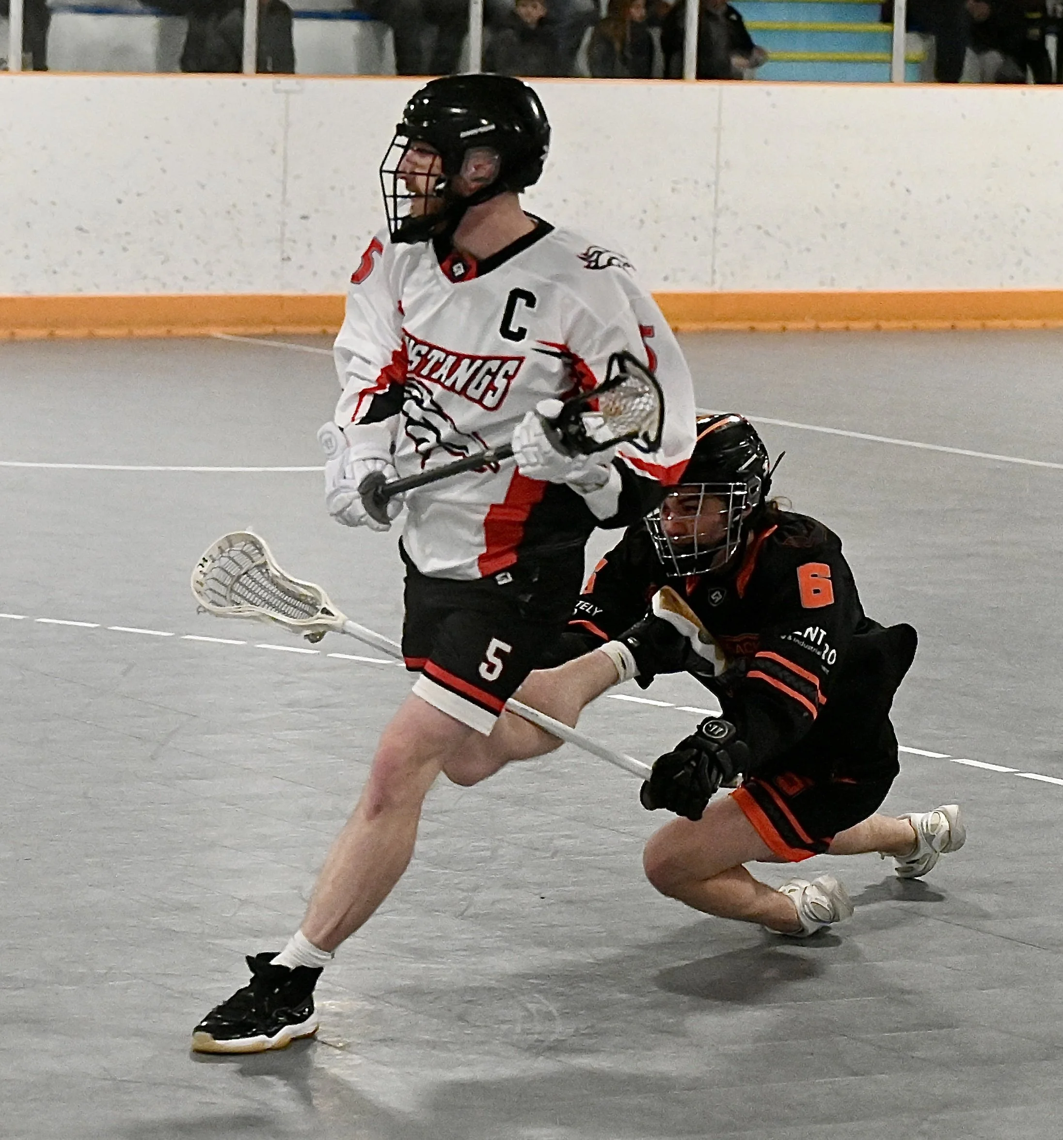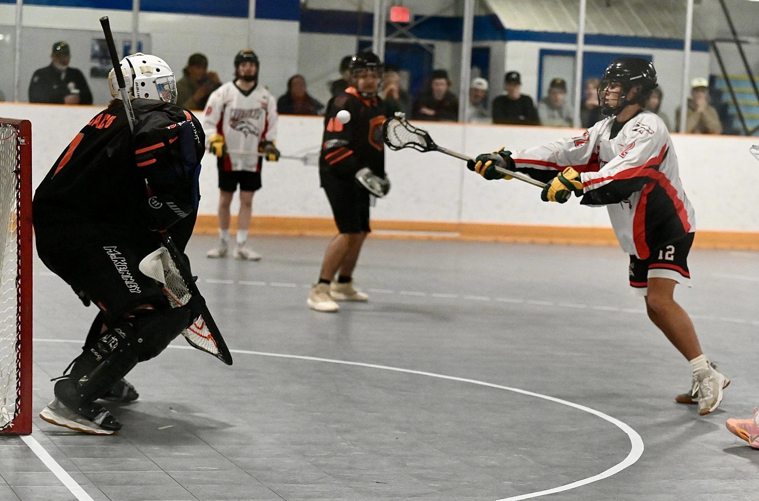With a ten goal first period the Moose Jaw Mustangs junior lacrosse team never looked back as they defeated the Weyburn Razorbacks 21 - 3 in Prairie Gold Lacrosse League action.